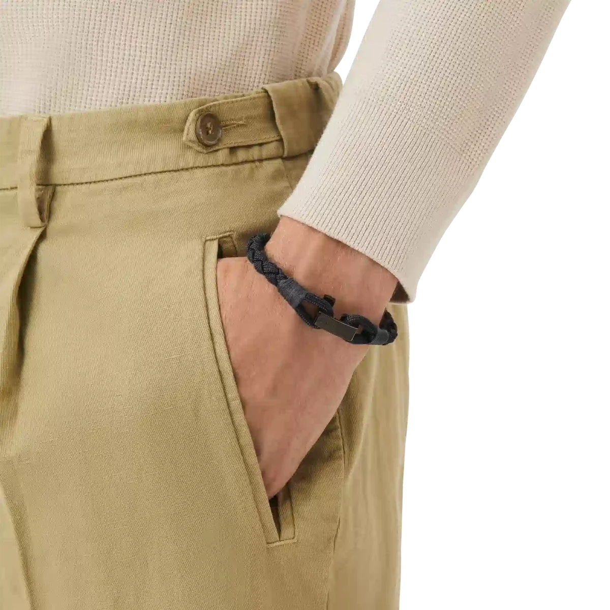 The piece of jewelry has a strap in black nylon and a T-Hook closing in stainless steel with black PVD coating.