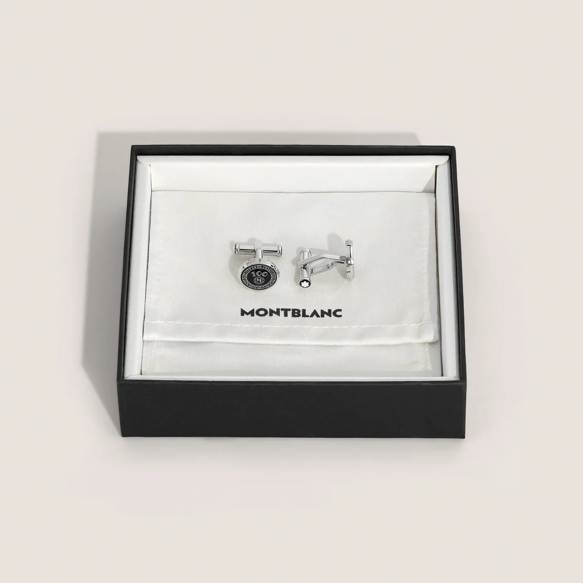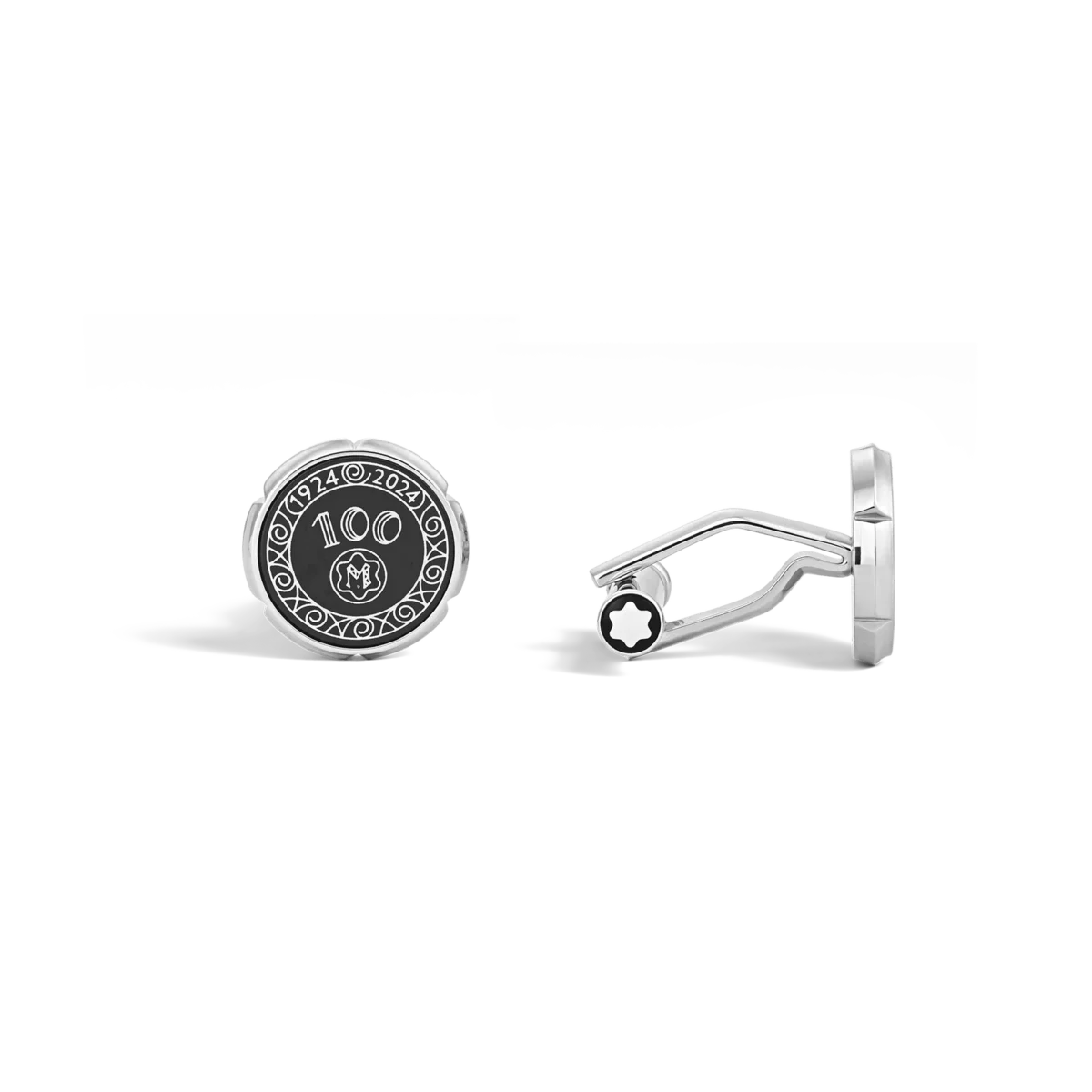 Cufflinks in stainless steel with Meisterstück 100 years anniversary nib décor in black laquer inlay