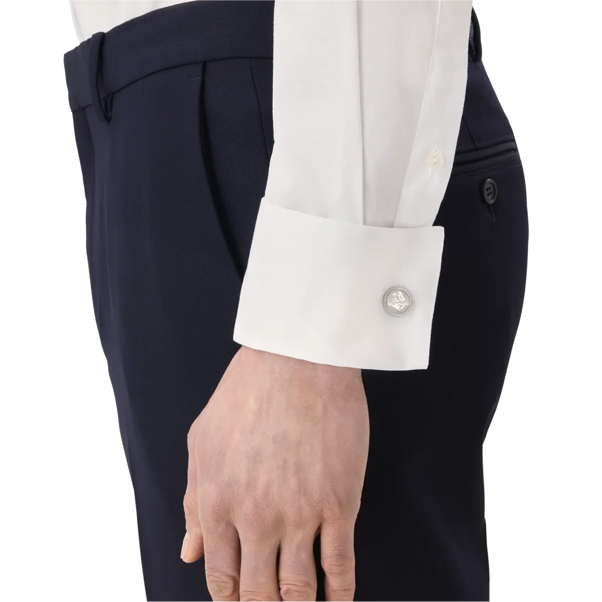 Cufflinks are made in stainless steel with engraving that recalls the motif on the back case of Montblanc 1858 Ice Sea watch.