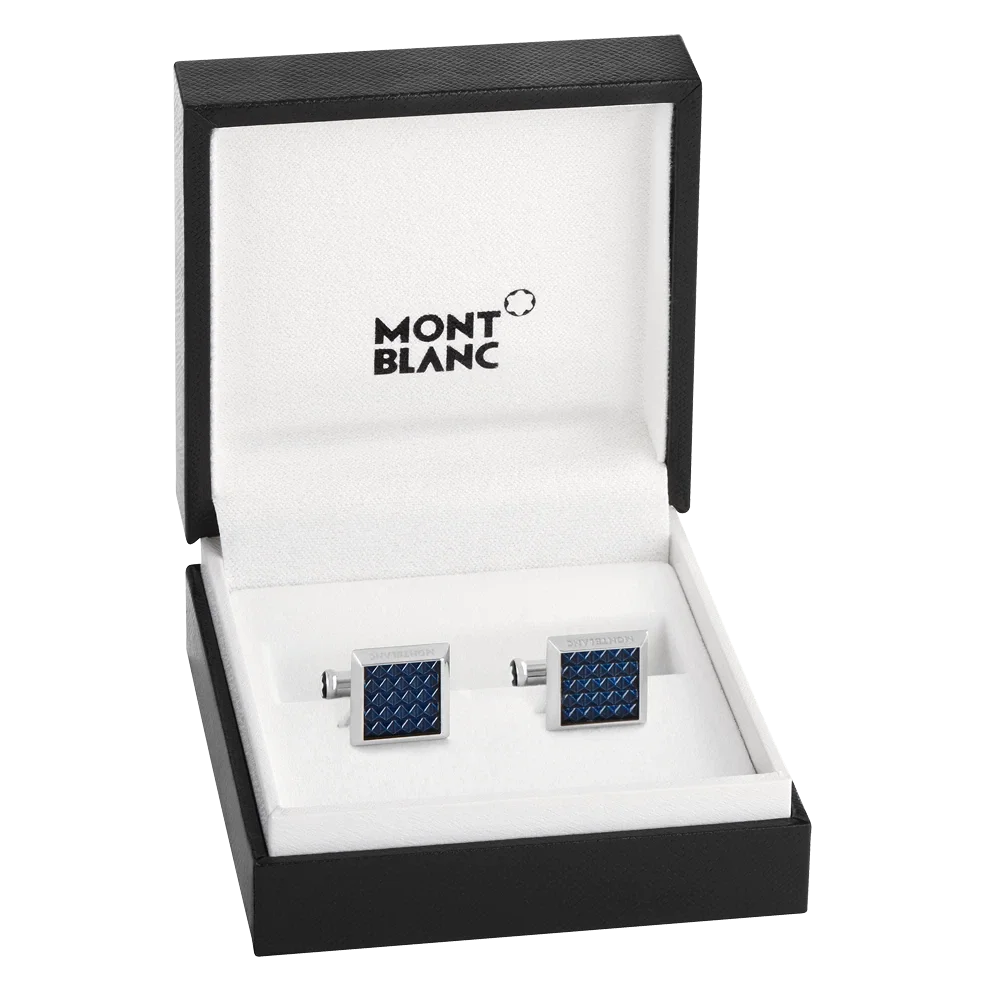 The Meisterstück collection celebrates timeless style. Linked to the Montblanc Meisterstück writing instrument, these rectangular cufflinks in stainless steel are inspired by the blue hour, featuring a jewel with a powerful Montblanc signature.