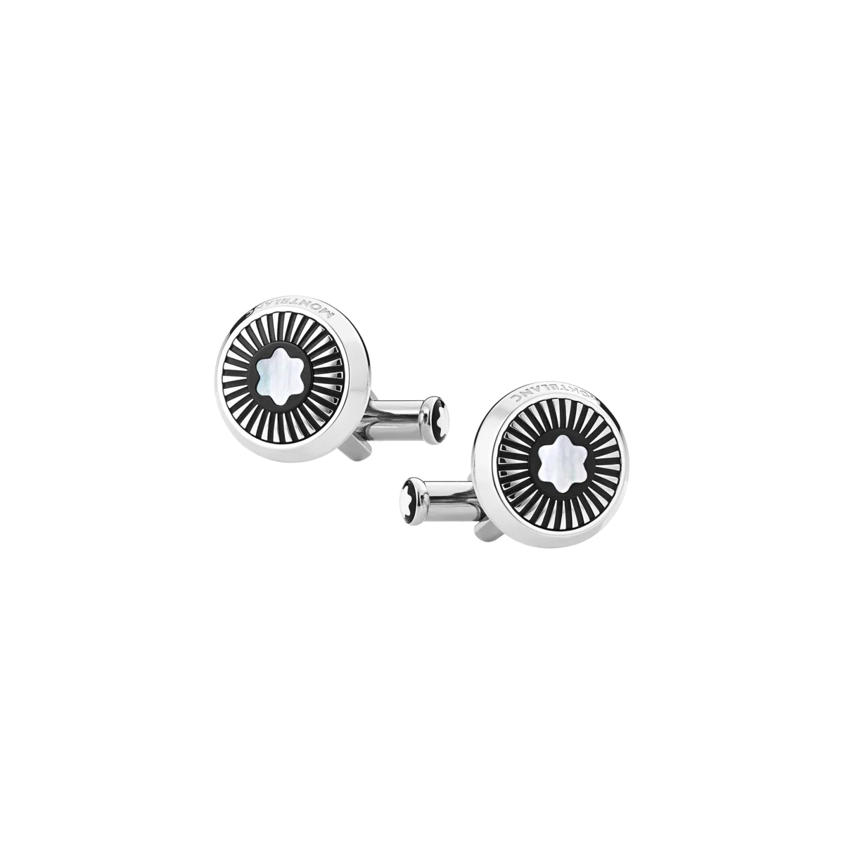 Discover all the details of the Cufflinks, round in stainless steel with ray pattern and mother-of-pearl snowcap emblem. Shop online on the official Montblanc store.