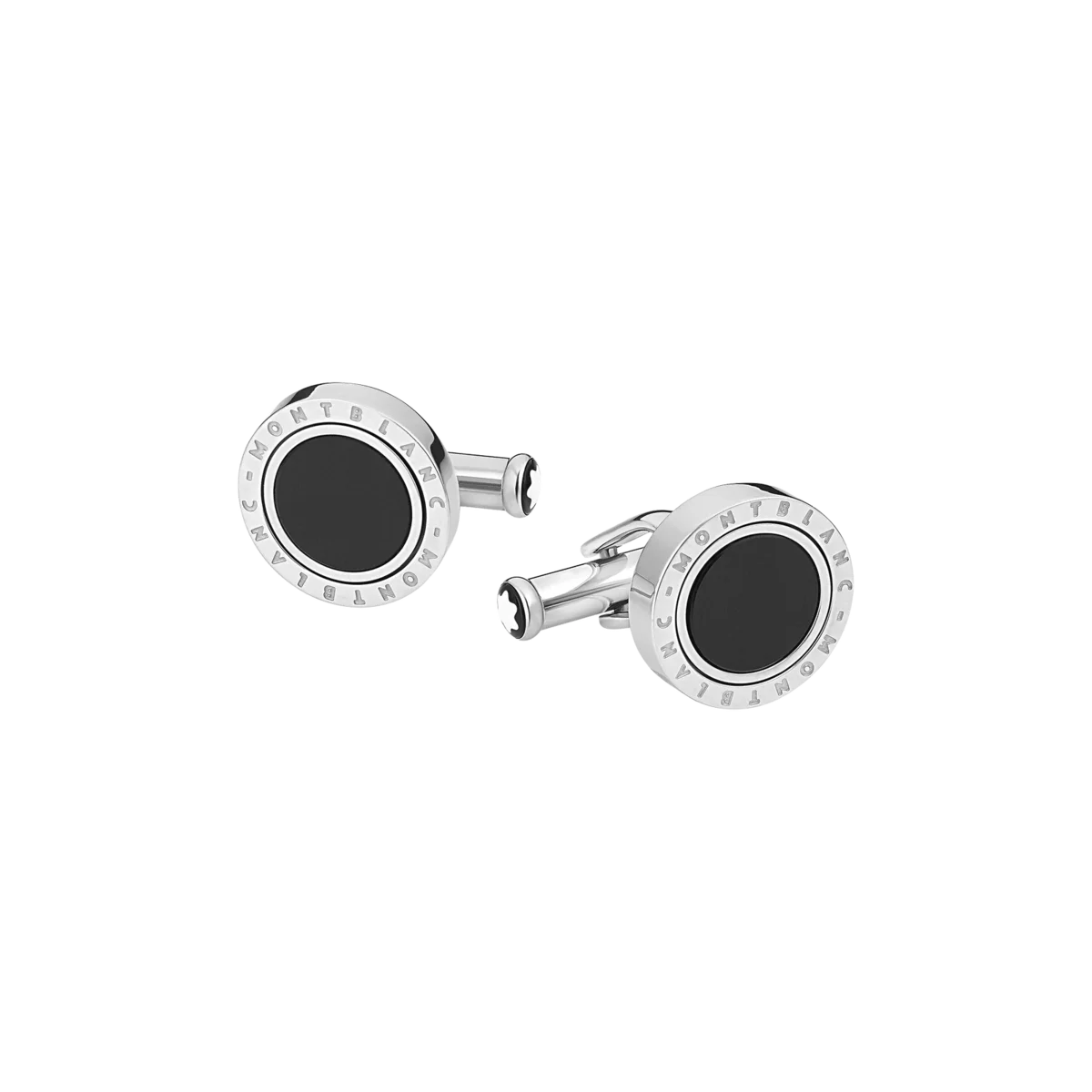Meisterstück cufflinks celebrate understated style and elegance. Linked to the Montblanc Meisterstück writing instrument, the timeless round shape in stainless steel with onyx inlay and a rotating ring creates a jewel with a powerful Montblanc signature.