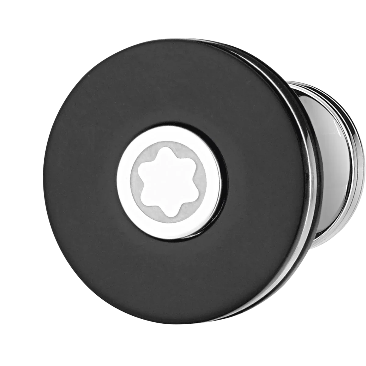 The Pix cufflinks feature a modern style and young appeal. The timeless round shape in stainless steel with black resin is inspired by the Bauhaus architectural movement and named after the historical PIX trademark. The central snowcap emblem creates a jewel with a powerful Montblanc signature.
