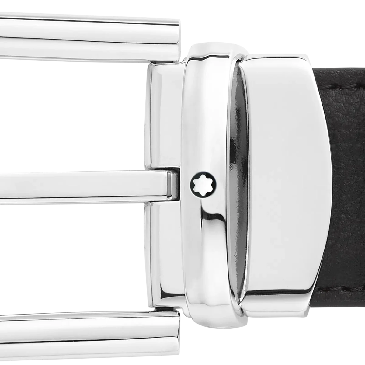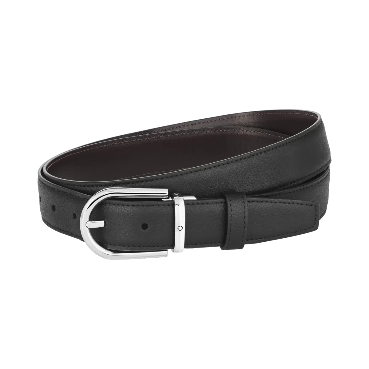 Discover all the details of the Horseshoe buckle black/brown 30 mm reversible leather belt. Shop online on the official Montblanc store.