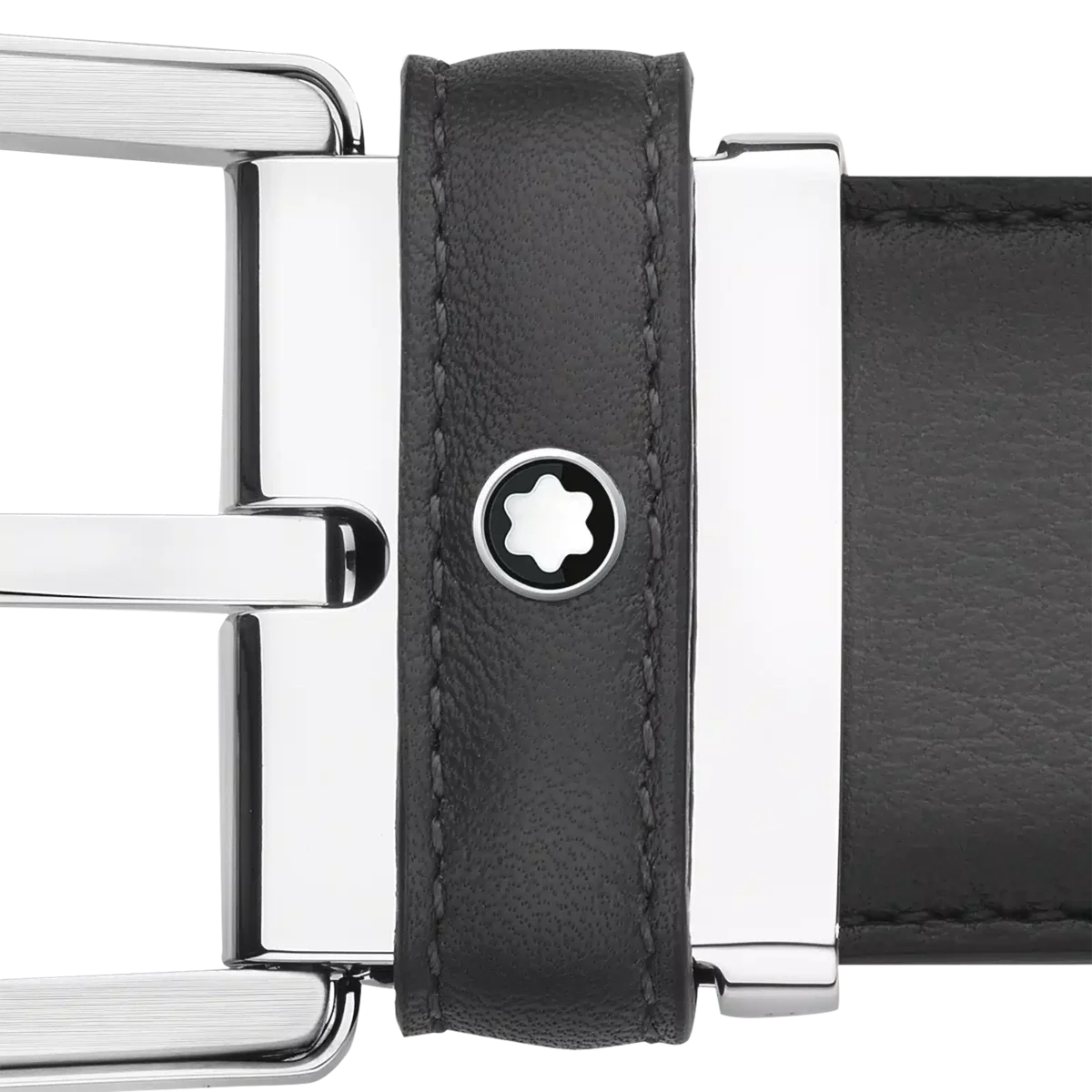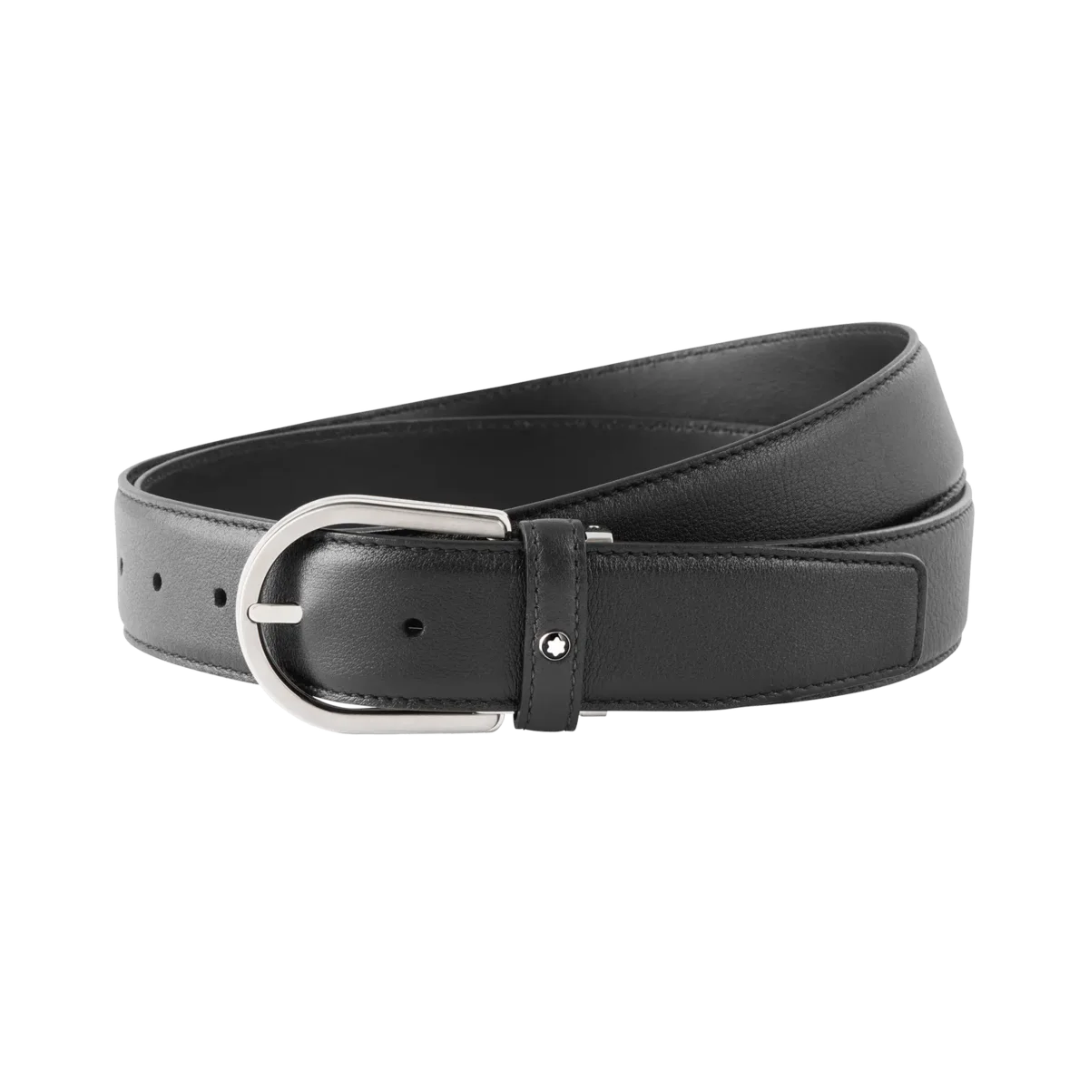 Horseshoe shiny & matte stainless steel pin buckle. Self-adjustable, 3.5 cm x 120 cm, gray plain leather strap featuring the unique patina of hand-painted leather with a delicate gradation of colors.