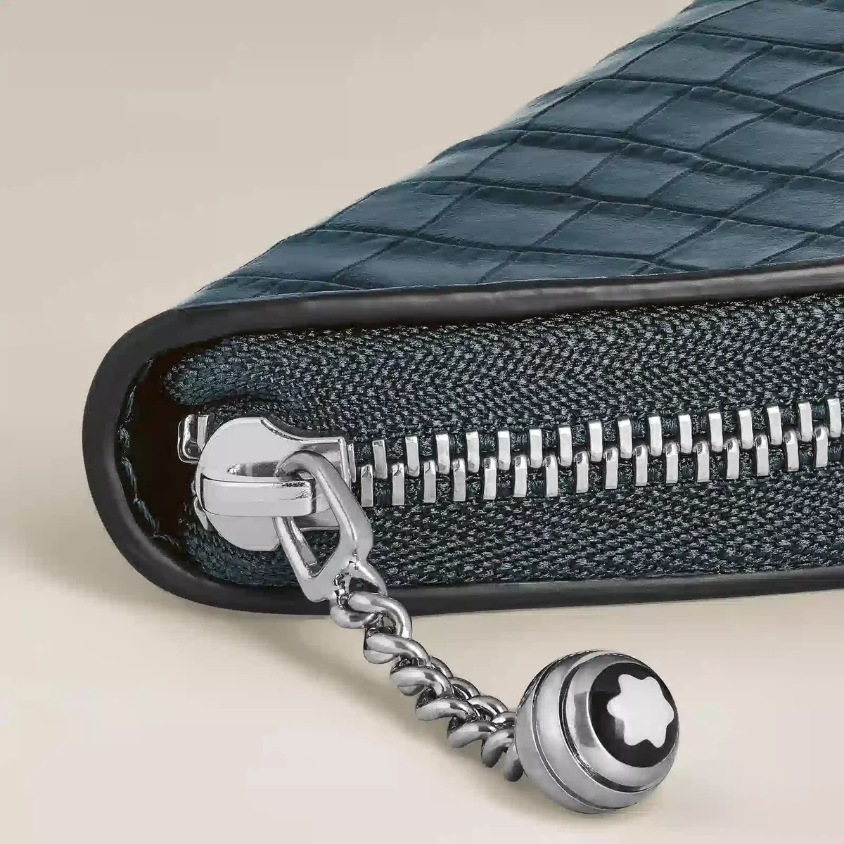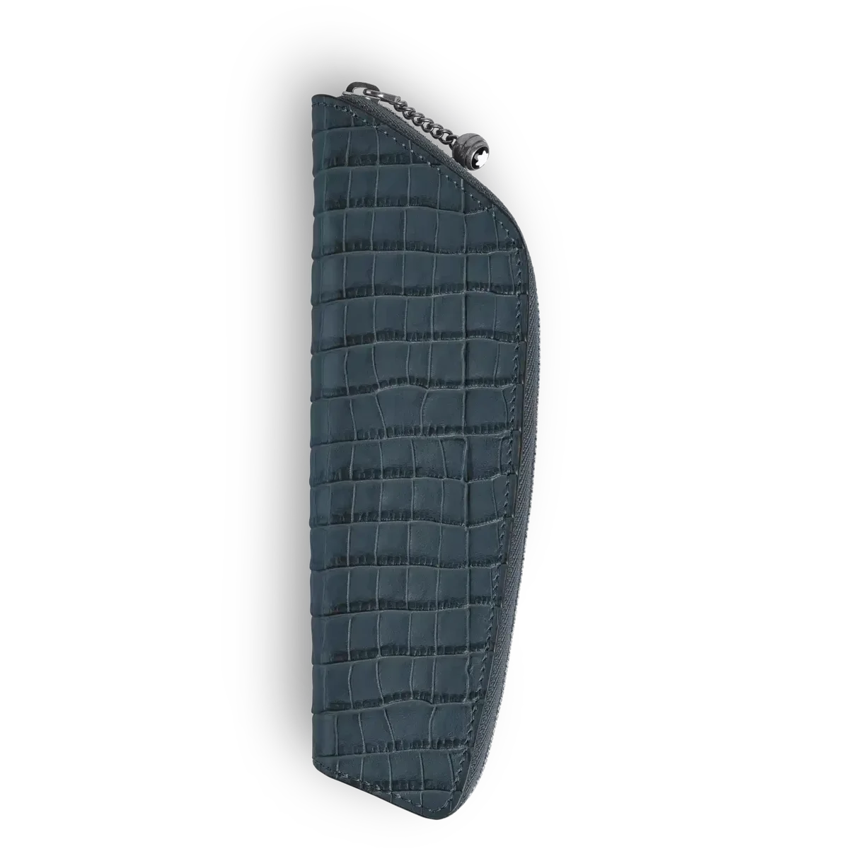 The pen pouch celebrates Montblanc’s legacy with a modern touch. Crafted from velvet blue croco-embossed leather, it features the signature chain zip puller with a spherical emblem, inspired by an archival Montblanc pen pouch, one of the brand’s earliest leather creations. Designed to hold one writing instrument, such as the Meisterstück Classique or LeGrand, this sleek pouch blends distinctive style with everyday practicality.
