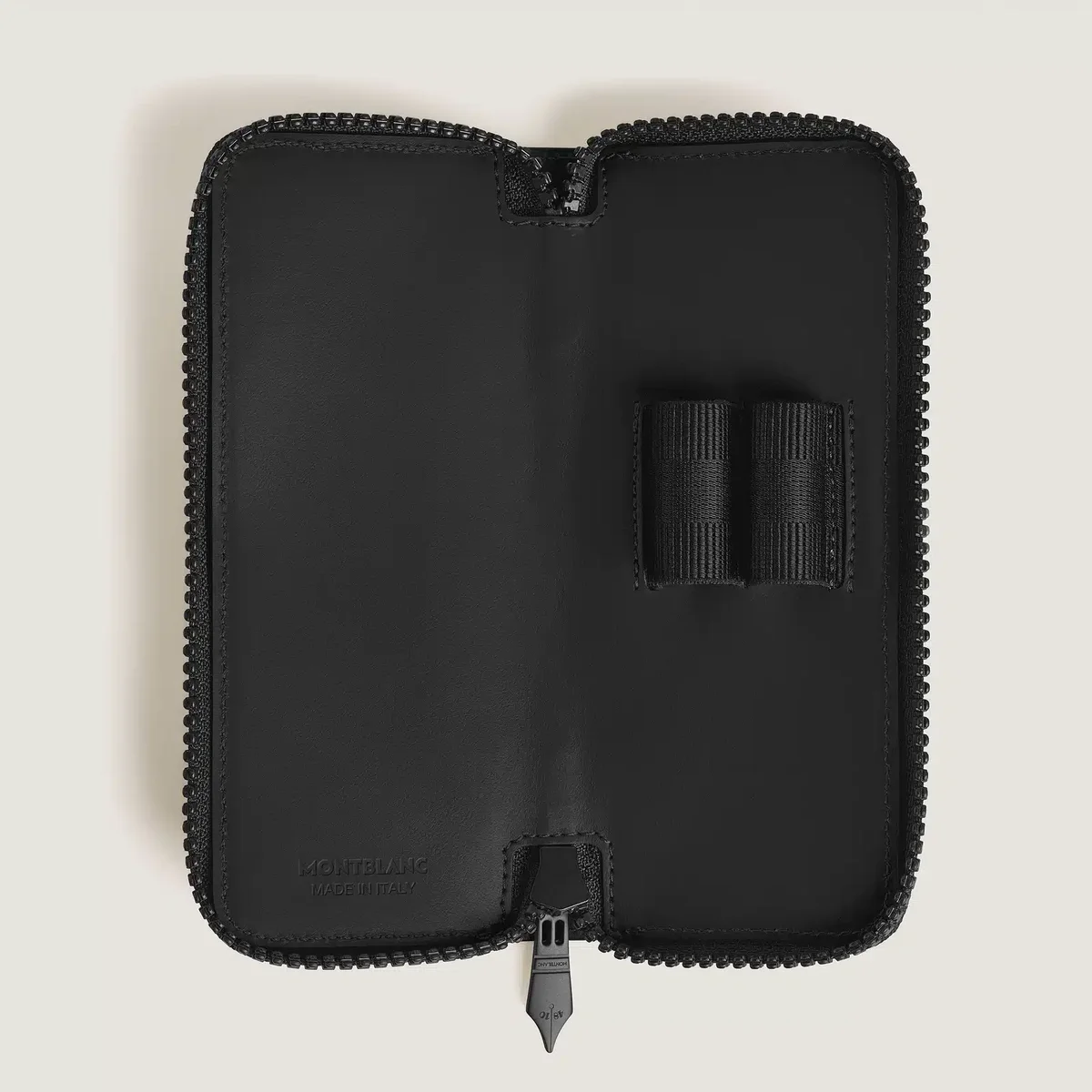 Crafted from black full-grain leather with the iconic Extreme 3.0 motif, this pen pouch provides a stylish way to safely transport or store your favourite writing instruments. Designed to fit two pens the size of the Meisterstück Classique or Le Grand, it features a secure zip closure, a zip puller in a shape of the nib and is finished with the Montblanc emblem for a refined touch.