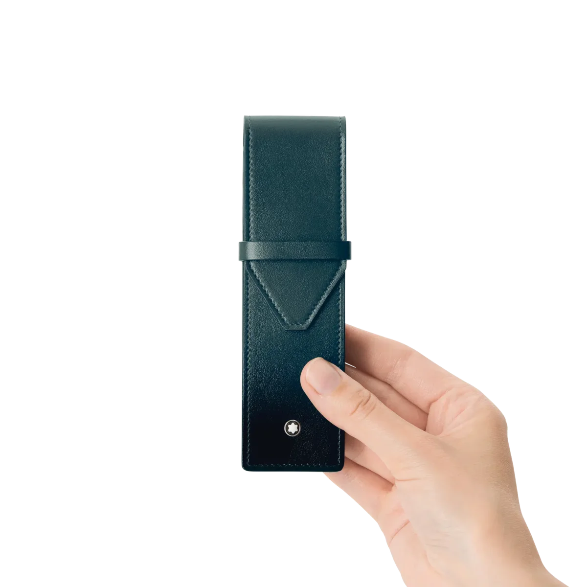 Carry your writing instruments in style with this versatile Meisterstück pen pouch. Designed to be your stylish companion in the office and beyond, it provides a secure home for two writing instruments. Meticulously crafted from refined British green deep shine leather with a manually applied sfumato effect, its envelope-shaped design opens to reveal a dedicated compartment. It accommodates two writing instruments of Meisterstück LeGrand or Classique size. Look for the Montblanc emblem detailing the front flap. Keep your pens safe and make a statement with this must-have accessory.