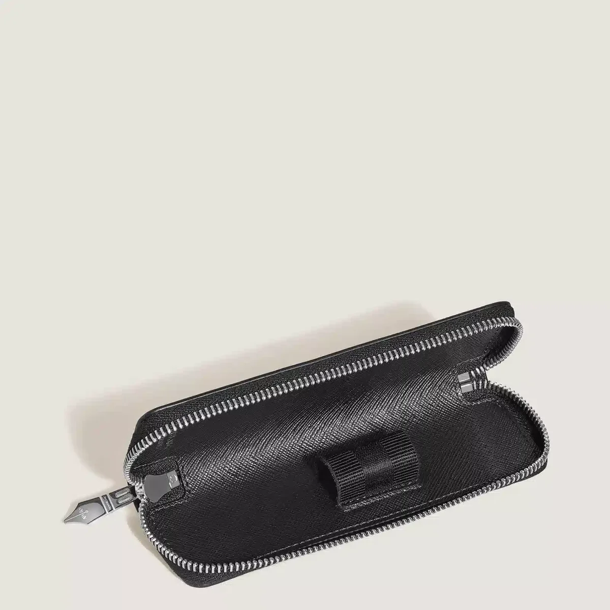 Designed to accommodate one pen the size of the Meisterstück Classique or LeGrand, this pen pouch offers a secure and stylish way to transport or store your favourite writing instrument. Crafted from two-tone embossed sartorial leather in combination of blue and black, it features a distinctive nib-shaped zip puller, paying homage to Montblanc’s writing heritage.