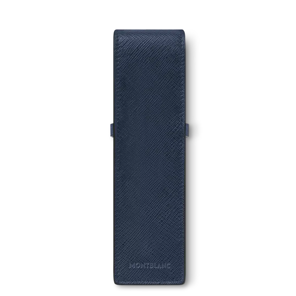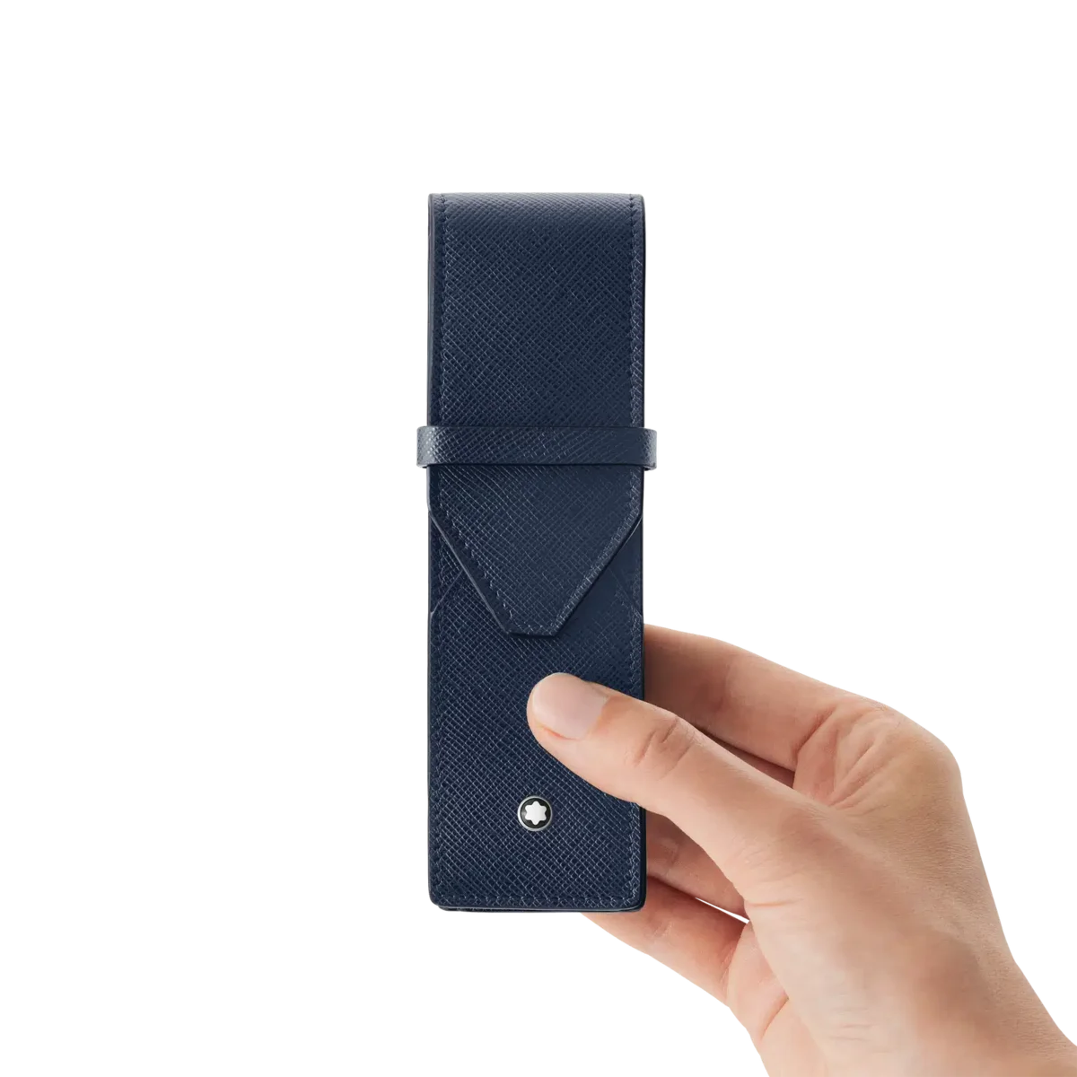 An all-time companion for business professionals and lovers of the written word, this elegant pen pouch comes with space for two writing instruments. Its full-grain ink blue leather silhouette has been fashioned with overlapping shapes, inspired by the shape of an envelope.