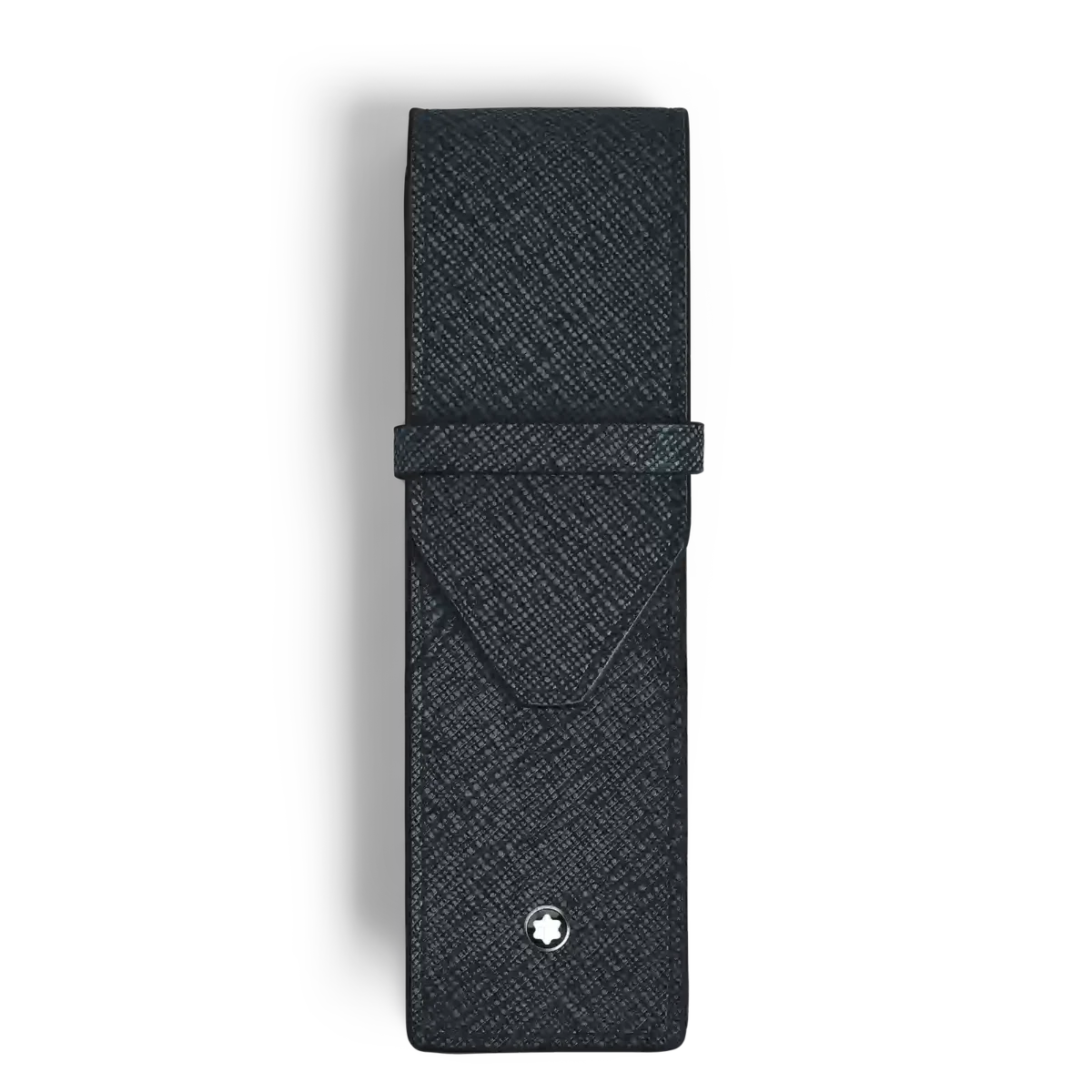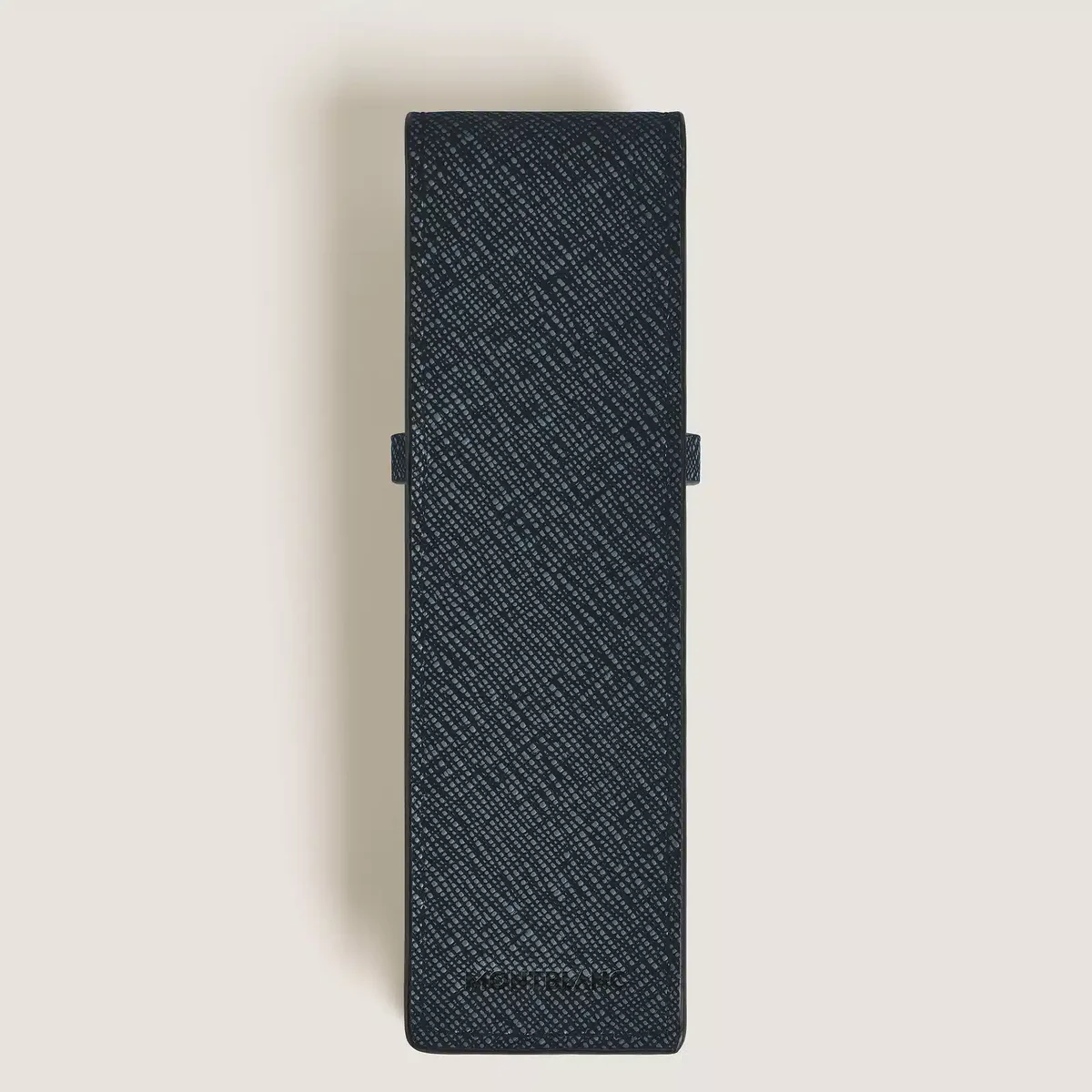 A sleek and refined accessory, this pen pouch is designed to hold up to two writing instruments. Crafted from embossed sartorial leather in an elegant two-tone combination of classy blue and black, its overlapping silhouette takes inspiration from the shape of an envelope, paying homage to the culture of writing.