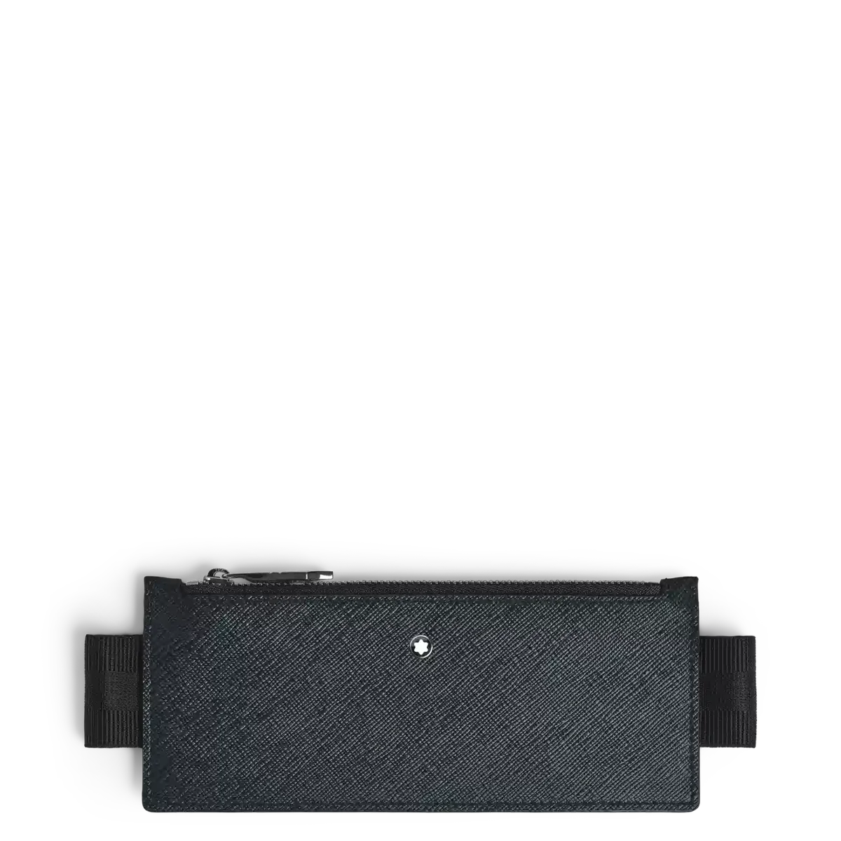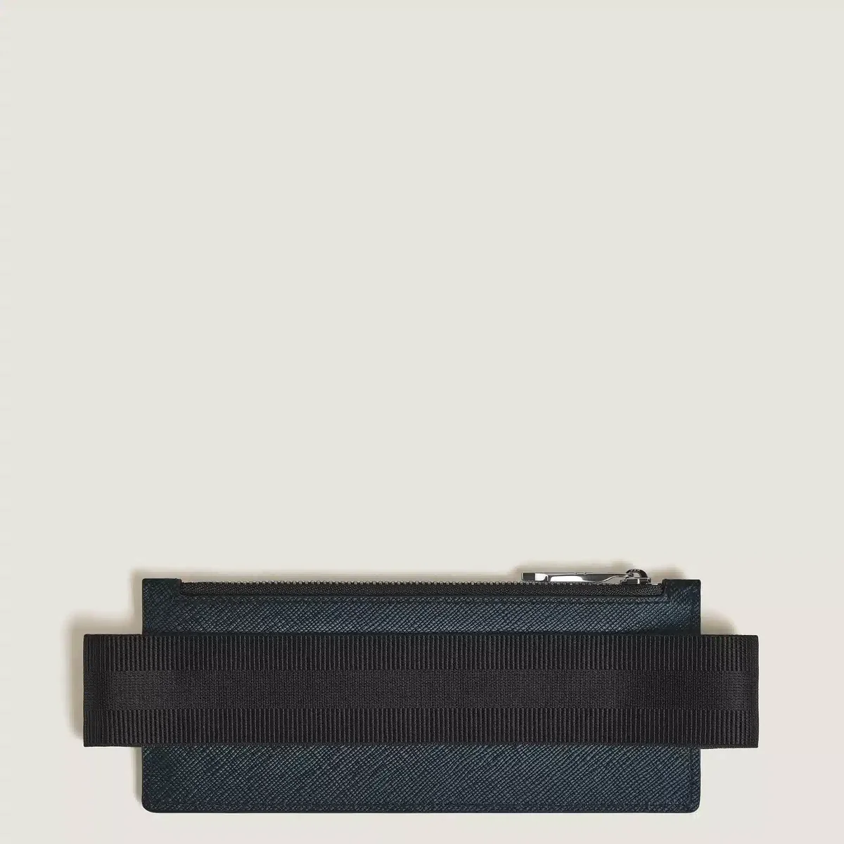 Crafted from two-tone embossed sartorial leather in blue and black, this pen pouch is designed to carry up to two writing instruments, accommodating Meisterstück Classique or LeGrand sizes. Featuring a distinctive metal zip puller in a shape of a nib and an elastic band for added convenience, it offers a sleek and practical way to protect and transport your favourite pens.
