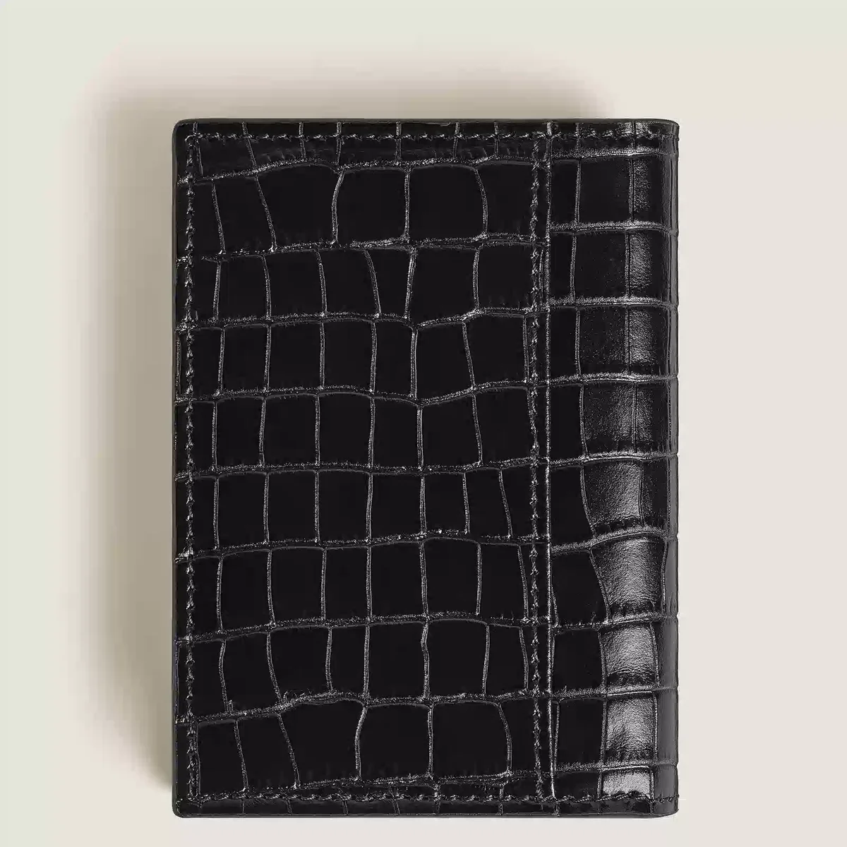Elevate your everyday transactions with this card holder, crafted from stylish black crocodile-print leather for a bold and elegant look. The exterior features a convenient credit card slot for quick access to your most-used card, while the interior includes three additional credit card slots, a dedicated compartment for business cards, and an extra pocket for receipts or other small essentials.