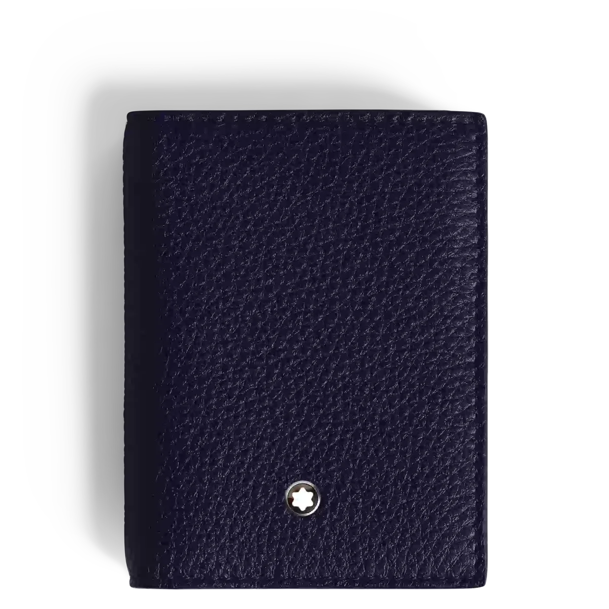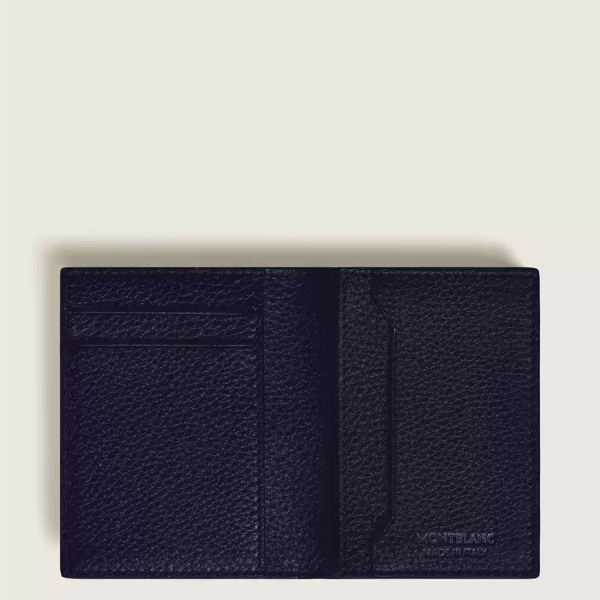 Carefully crafted in luxurious midnight blue soft grain leather, this pocket-friendly card holder is both chic and functional. It neatly fits several business cards and four credit cards, all while showcasing the elegant Montblanc emblem on the front.