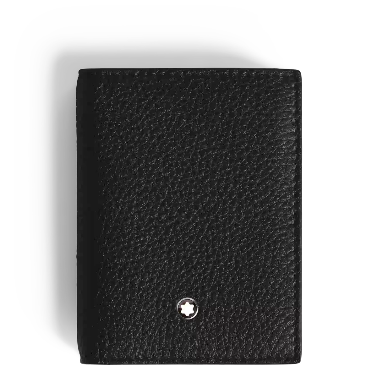 Carefully crafted in luxurious black soft grain leather, this pocket-friendly card holder is both chic and functional. It neatly fits several business cards and four credit cards, all while showcasing the elegant Montblanc emblem on the front.