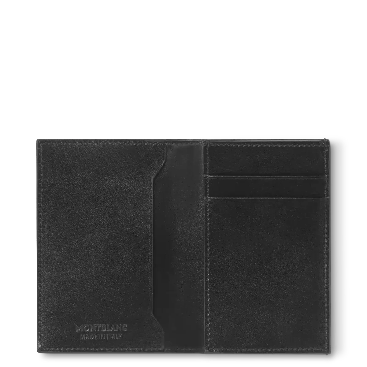 Crafted from smooth black leather, this sleek business card holder can accommodate two credit card in dedicated slots, with a generous compartment for business cards. There are also two additional pockets for folded notes or receipts. It’s lined with black fabric and finished with the Montblanc emblem.