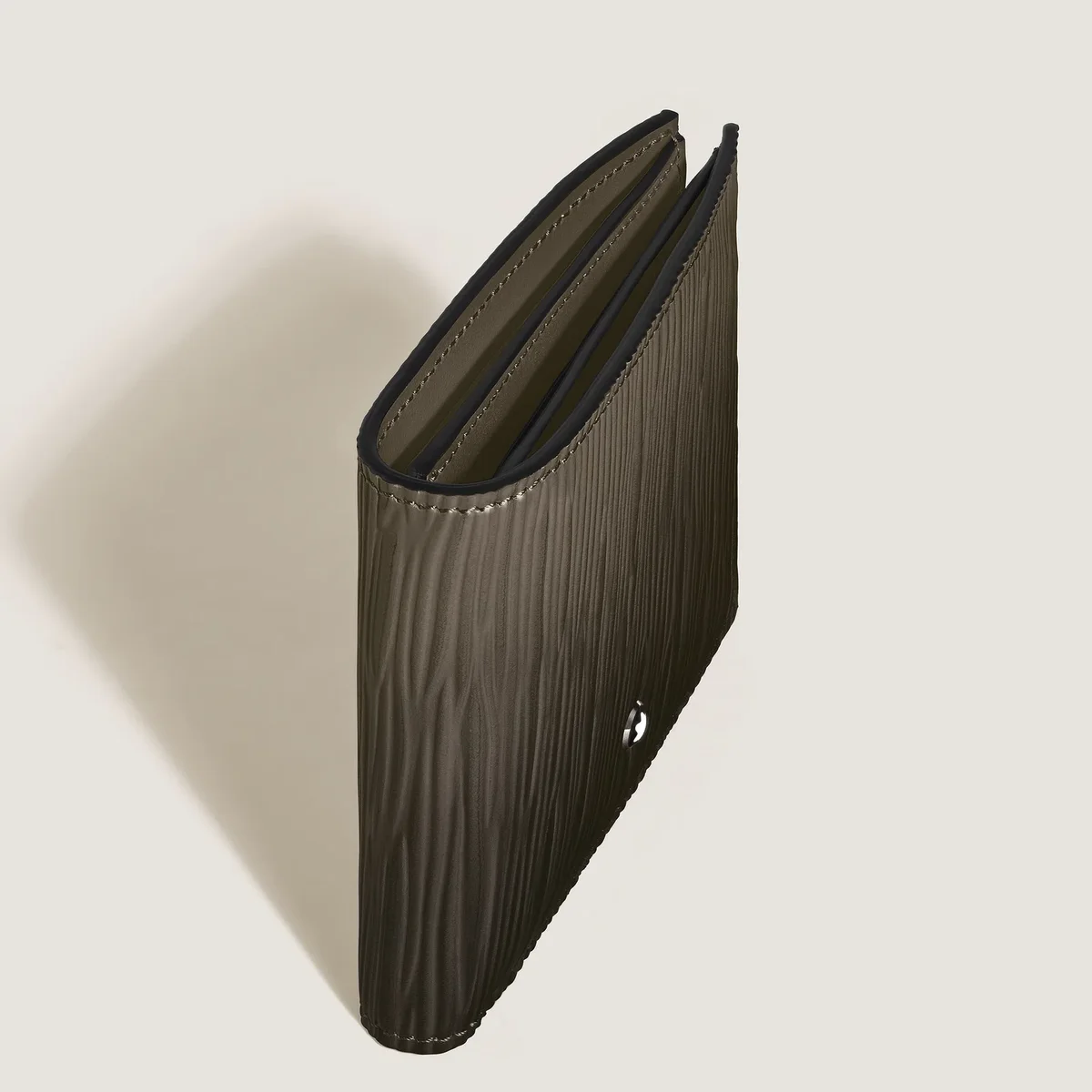 Slim and stylish, this classic bifold wallet is an elegant companion for daily use. Crafted from khaki Corteccia leather with an embossed tree bark motif and hand-applied sfumato effect, it combines refined craftsmanship with practicality. Inside, it features six credit card slots, two compartments for banknotes, two additional pockets for receipts, and the subtle Montblanc emblem on the front.