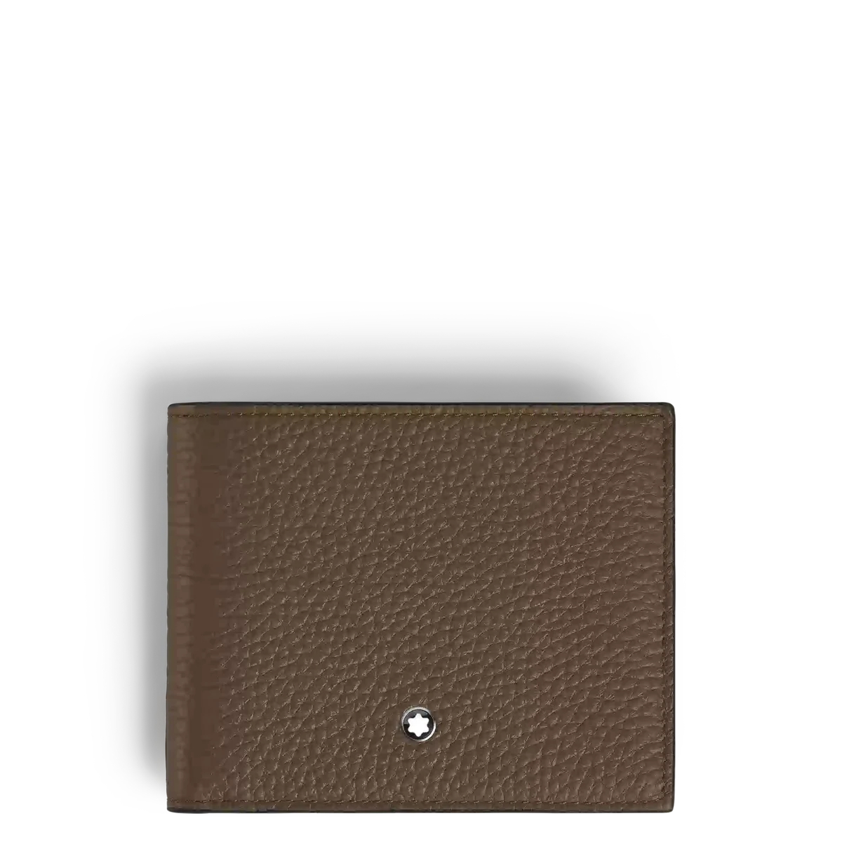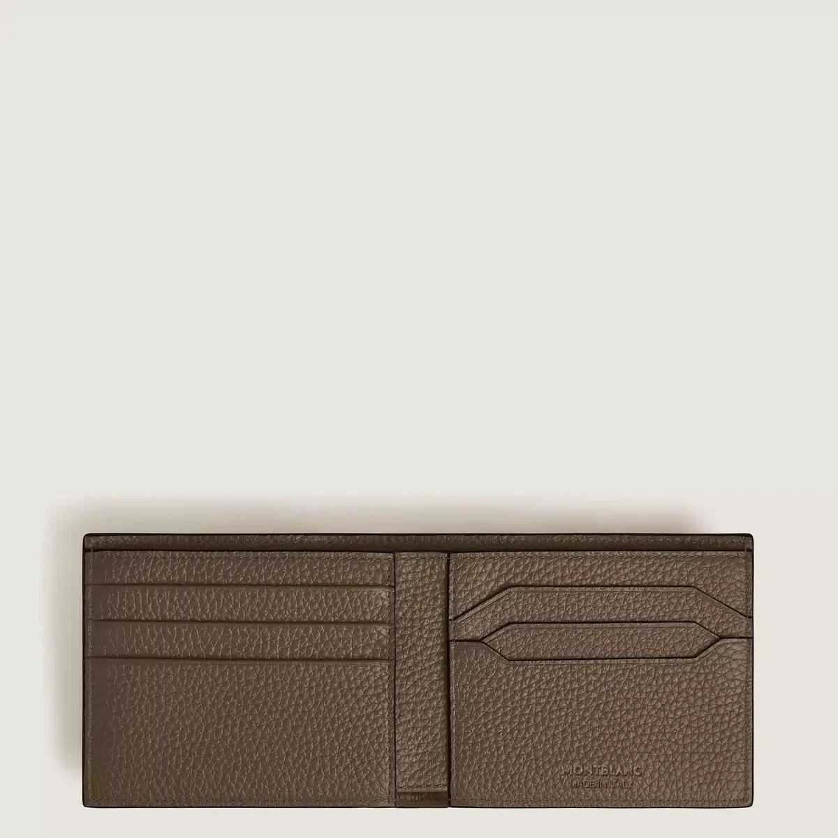 Slim and sophisticated, this classic bifold wallet in noisette premium grain leather is an elegant choice for everyday use. Thoughtfully designed, it features six credit card slots, two compartments for banknotes, two additional pockets for receipts, and is finished with the iconic Montblanc emblem on the front.