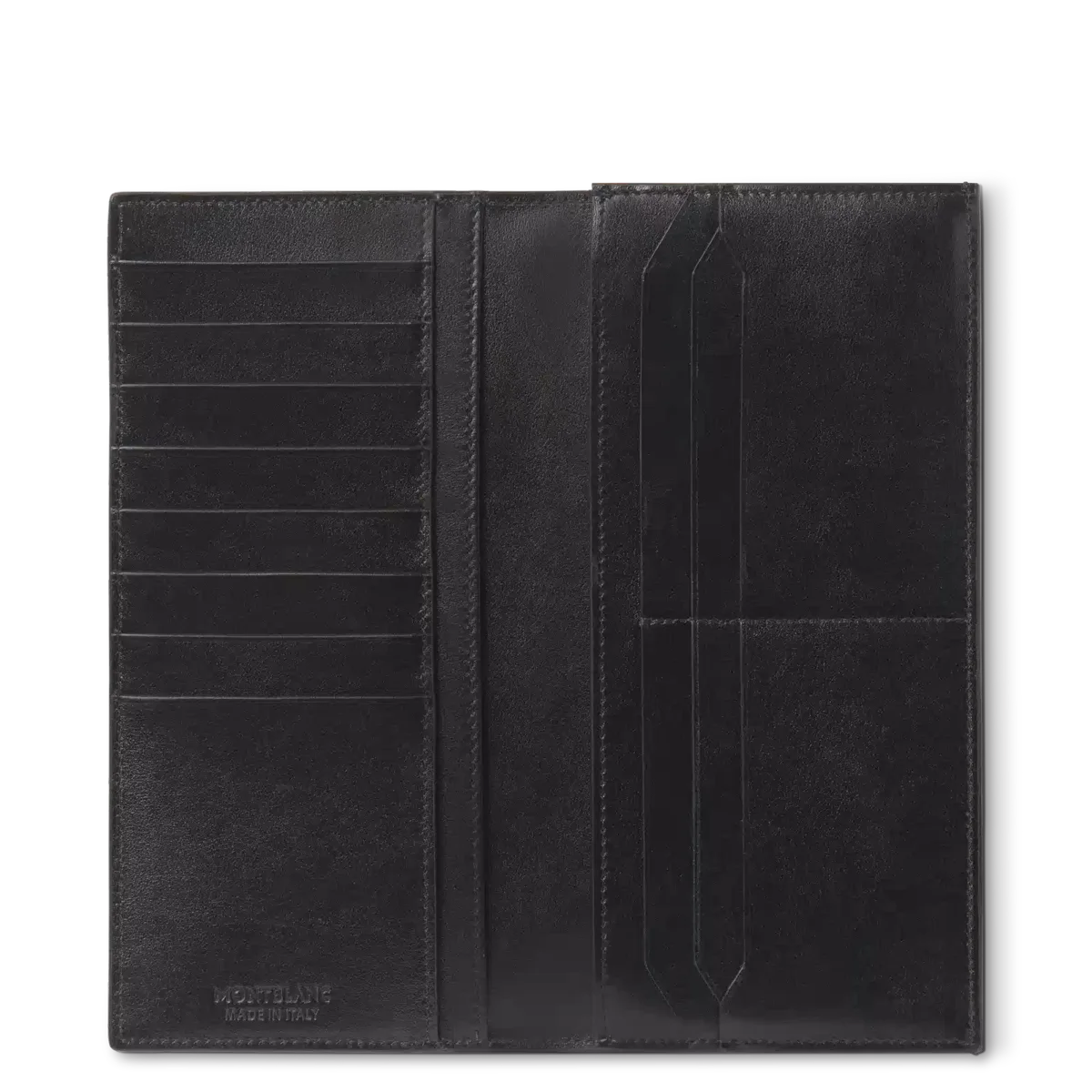A stylish wallet designed with functionality in mind, the Meisterstück 14cc features a large zipped pocket to safely hold coins or essentials, and can accommodate 14 credit cards in dedicated slots. The sophisticated wallet also features two compartments for banknotes, plus two additional pockets for receipts. Crafted from smooth leather, it’s lined with black fabric and finished with the Montblanc emblem.