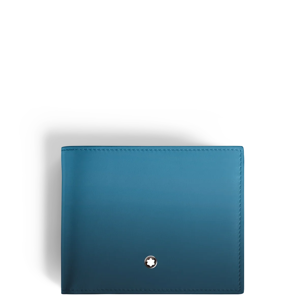 The Meisterstück wallet is a luxurious everyday accessory crafted in a deep shine smoky blue leather enhanced with a manually appplied sfumato effect. Elegant and functional, it can fit up to six credit cards in the dedicated slots. Two compartments dedicated to bankontes and receipts and two additional pockets banknotes tie up the wallet with extra storage space.