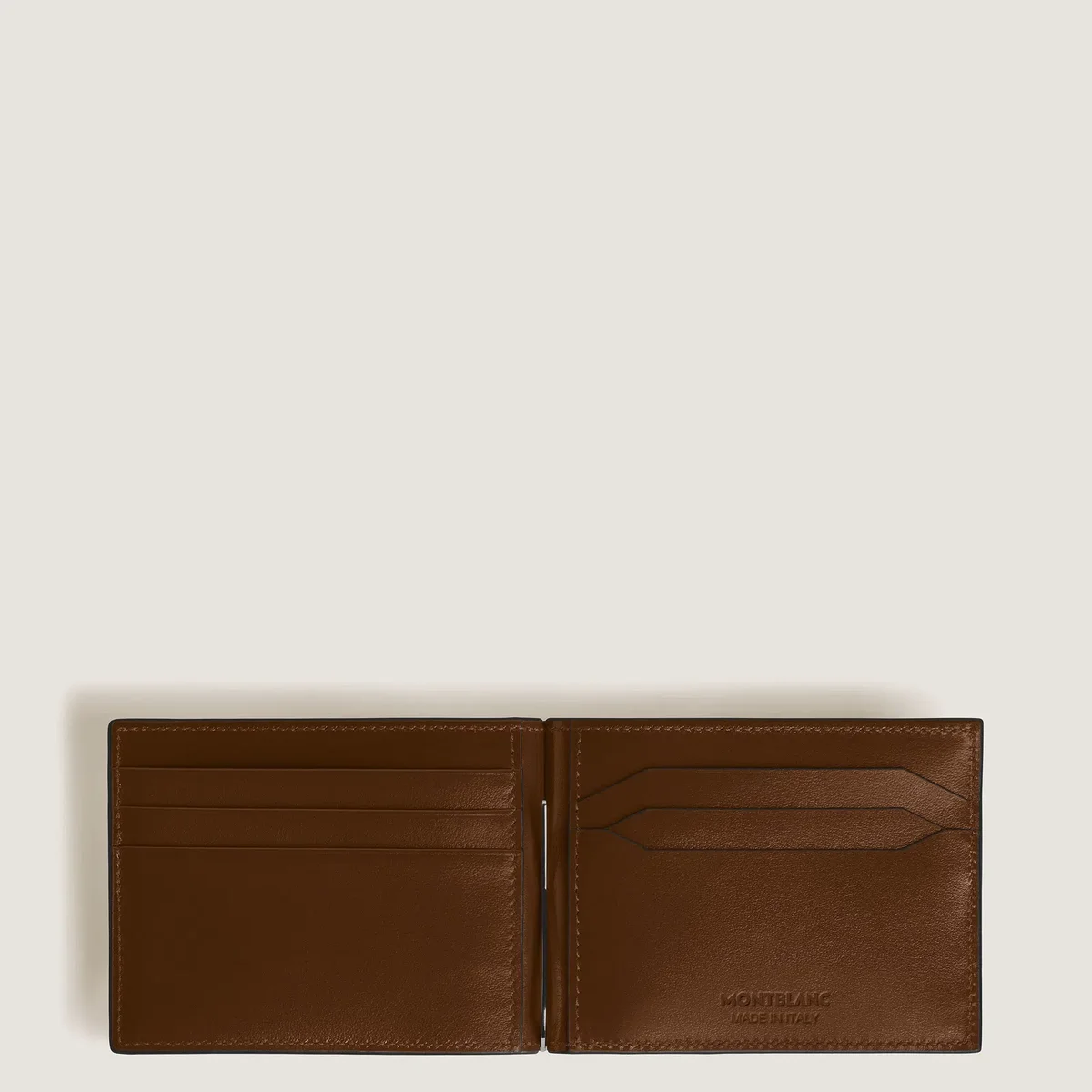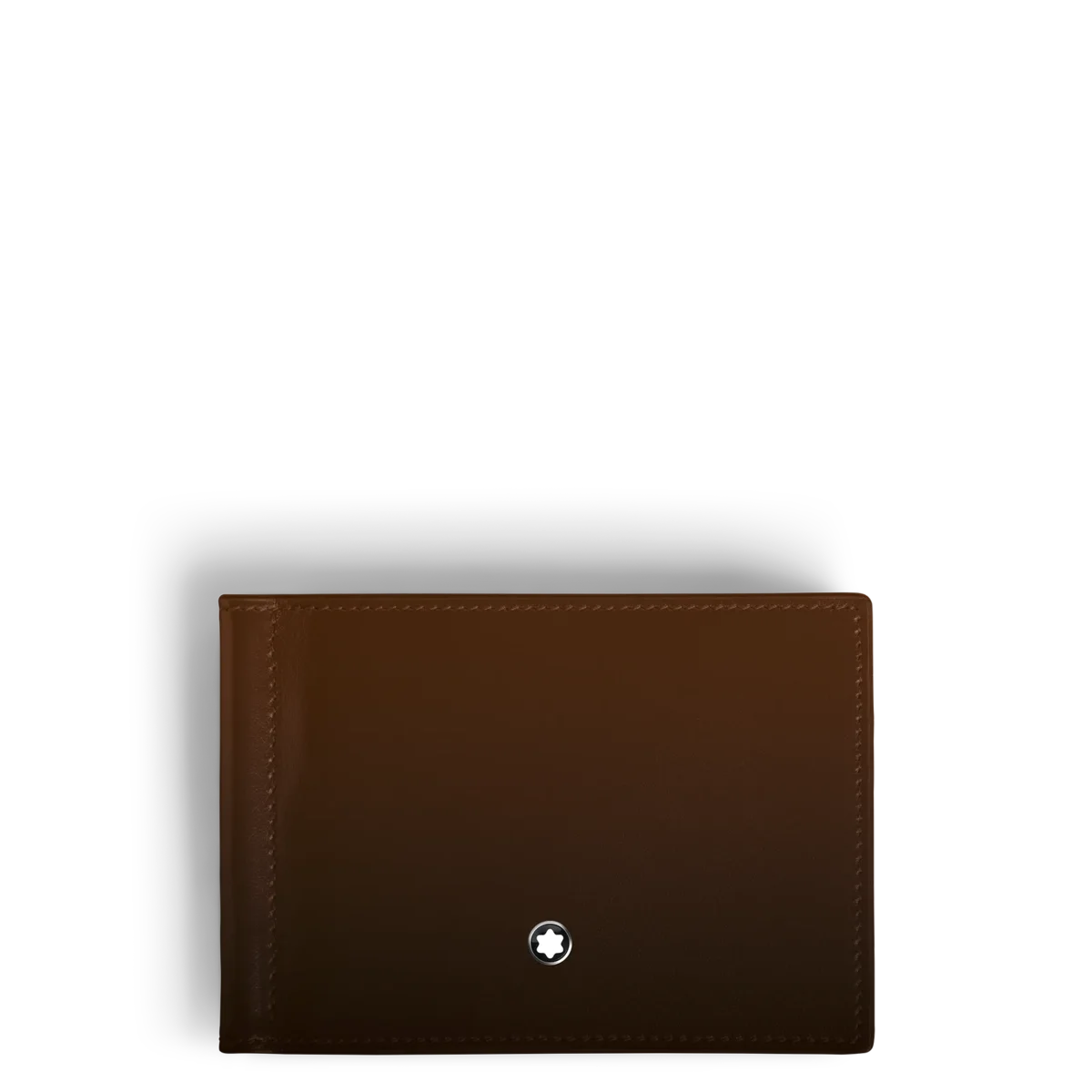 This slim bifold wallet reimagines a traditional design with an elevated touch. Crafted from smooth brown Meisterstück leather enhanced by a hand-applied sfumato effect it features an elegant metal money clip and six credit card slots, offering sleek everyday organisation for the discerning individual.