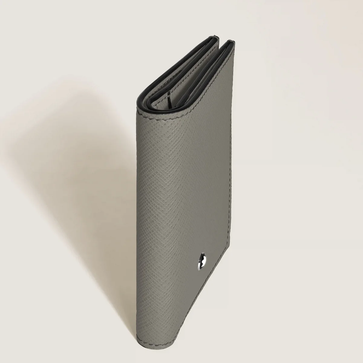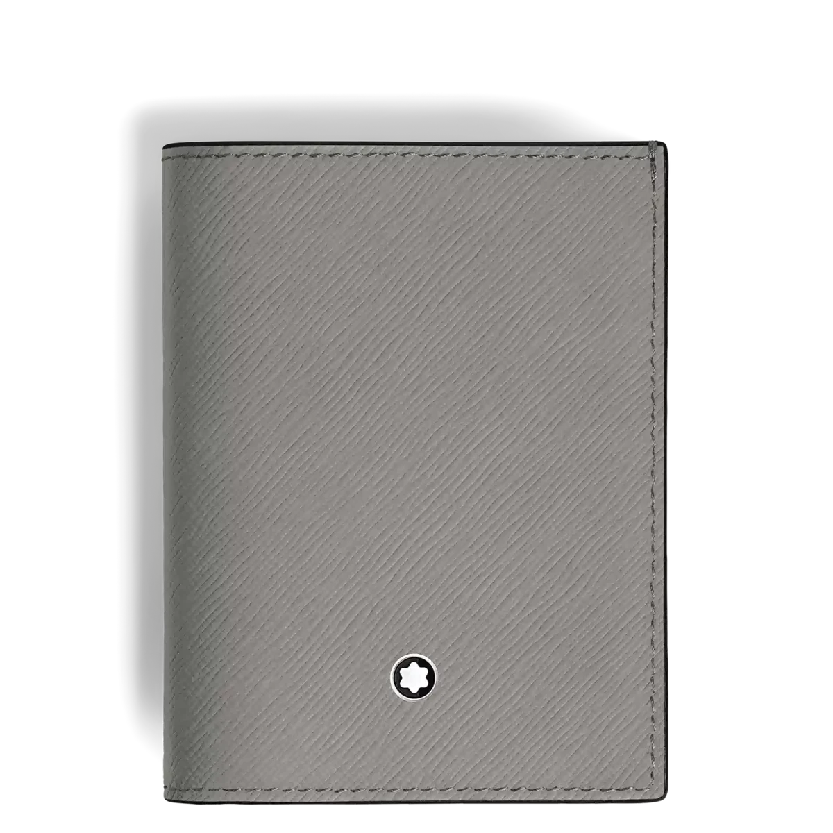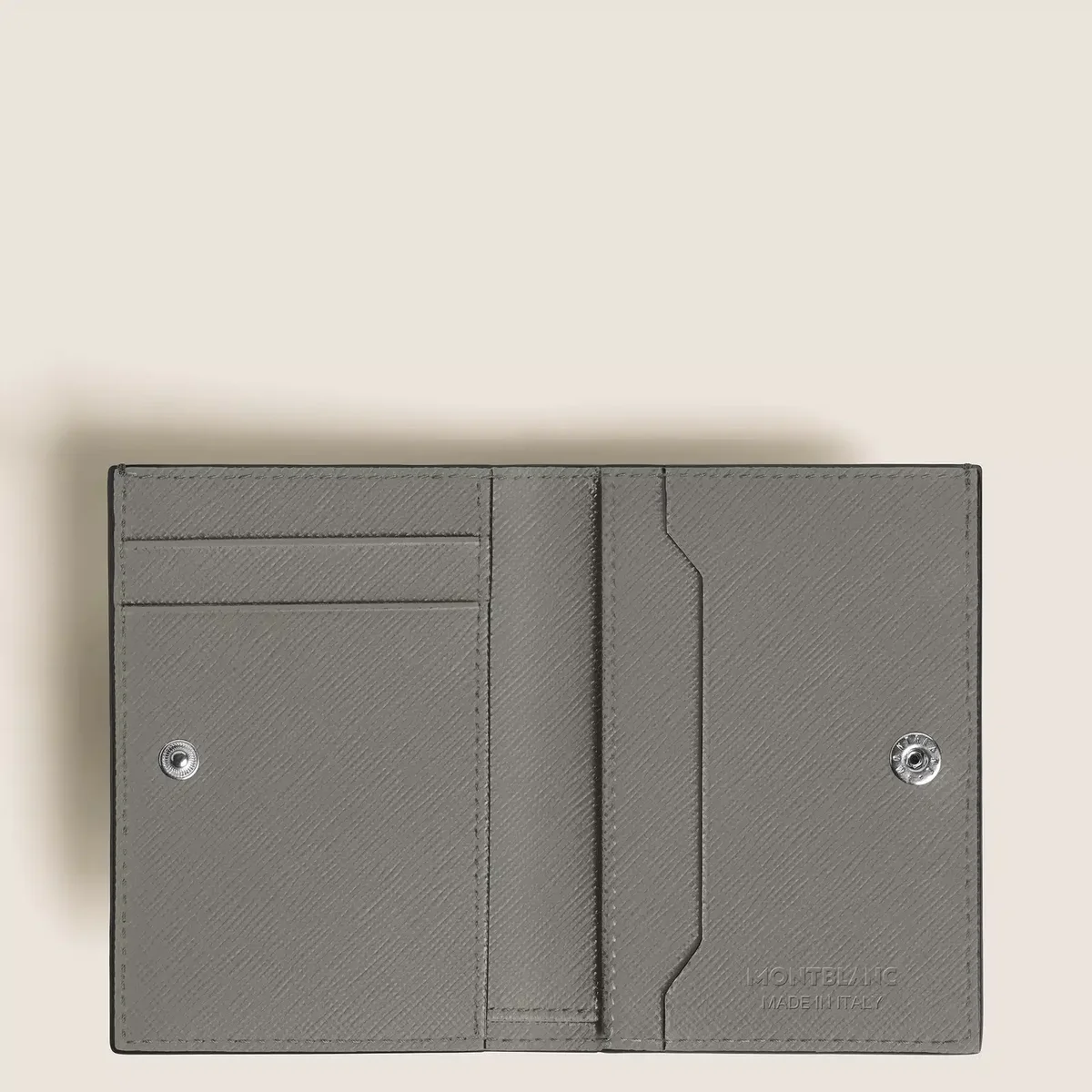 Small and stylish, this mini wallet crafted in medium grey Saffiano-printed leather allows you to travel light without leaving any of your important documents behind. Its compact silhouette opens to reveal three credit card slots and a banknote compartment, plus two additional pockets.