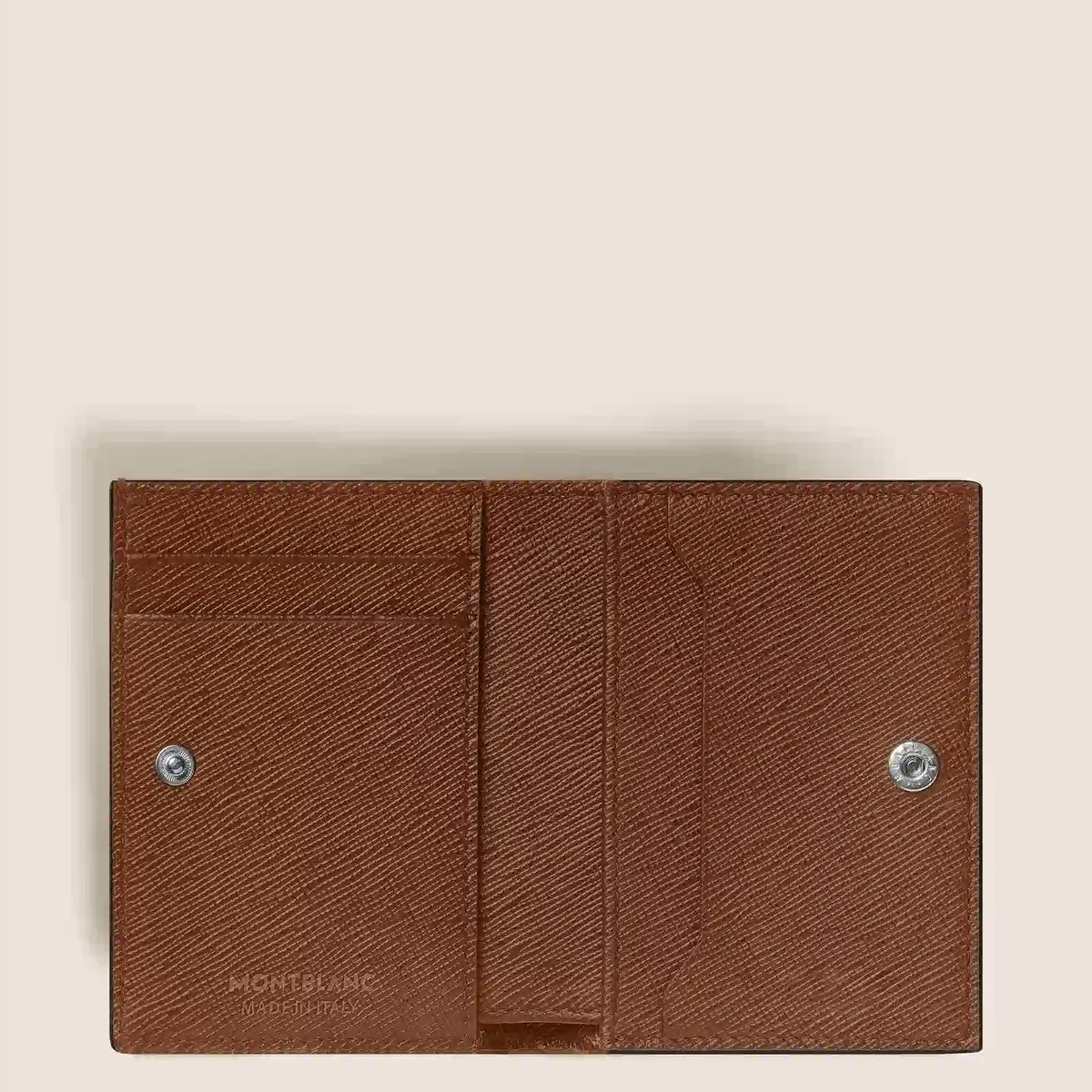 Crafted from embossed sartorial leather in elegant fauve colour, this small contitnental wallet is a compact and stylish essential. It opens horizontally and features a coin case, a secure flap with a press stud, and the iconic Montblanc emblem with a palladium finish. Inside, it offers a credit card slot, three additional card slots, a banknote compartment, a zipped pocket, and two extra pockets, ensuring smooth and organised storage in a refined design.
