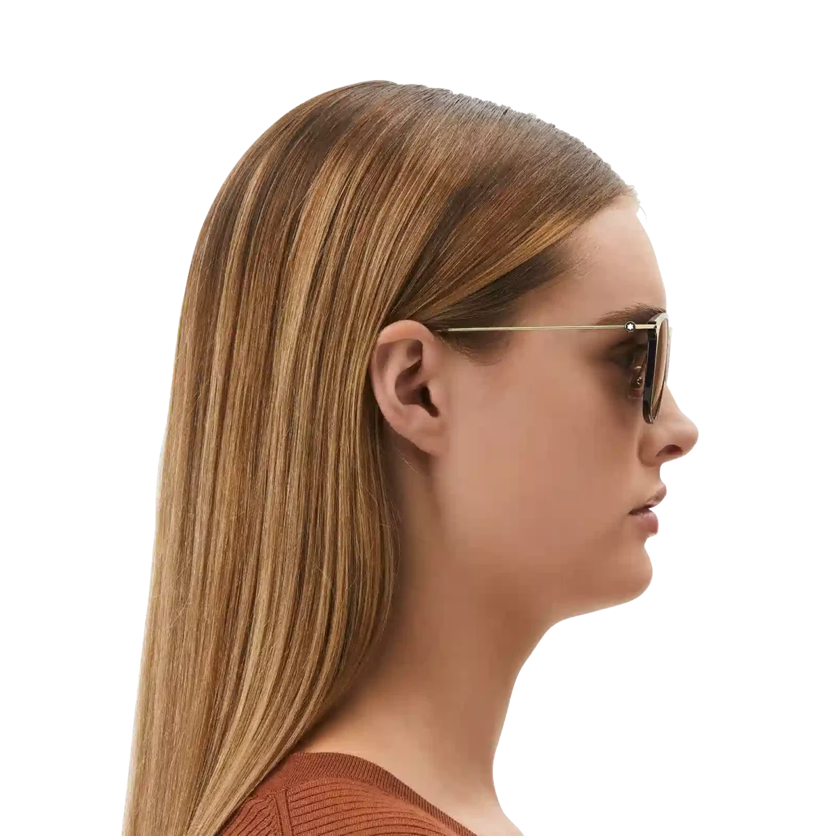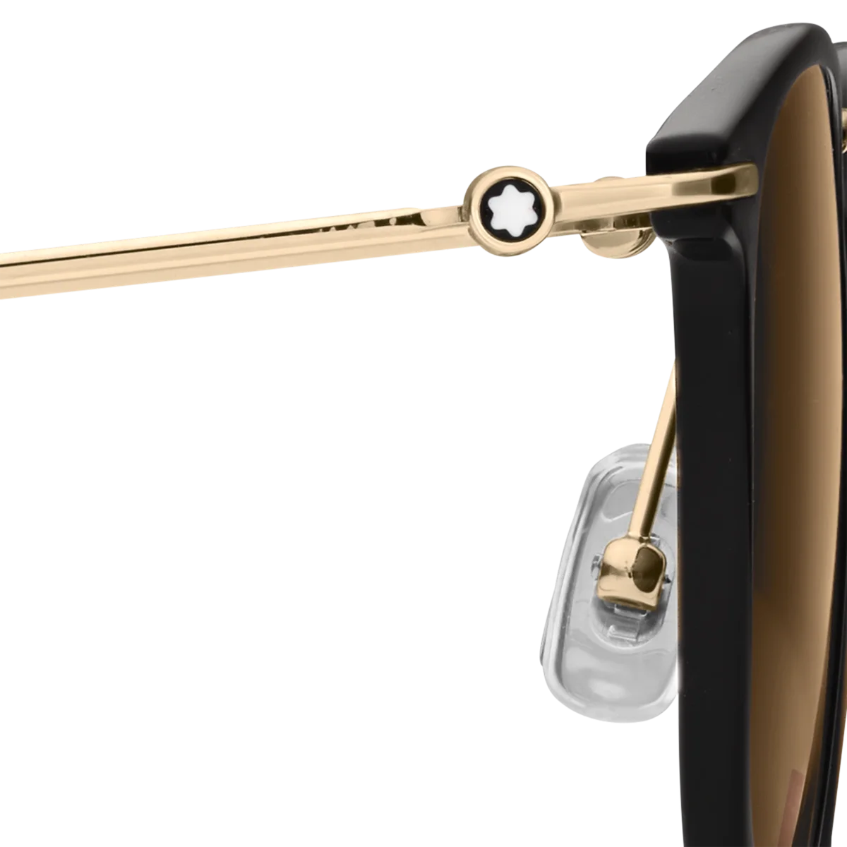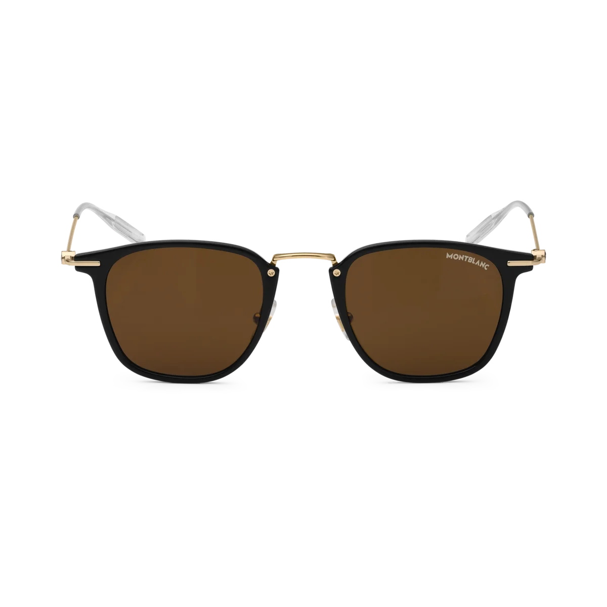 These lightweight black sunglasses with an injection-molded gold-colored frame are characterized by their round shape. The brown lenses provide a contemporary look and feel. The Montblanc logo is lasered onto the left lens and the anti-slip pattern is lasered onto the internal side of the temple tips to increase comfort.