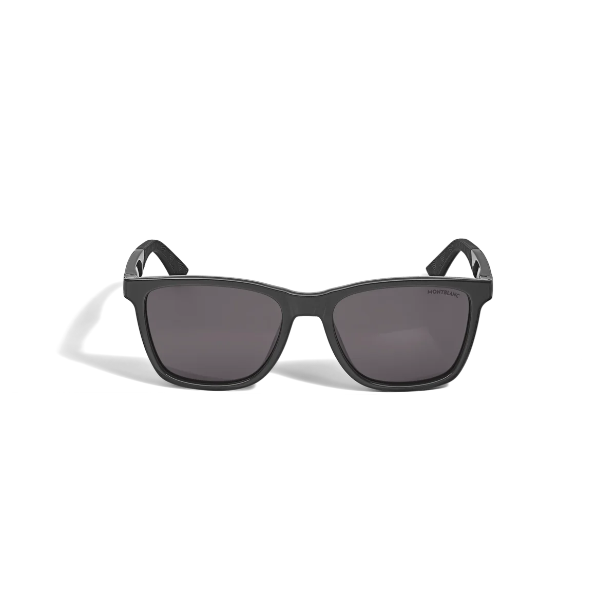 These sunglasses in a rectangular style have a black-coloured injected frame and grey lenses. This style additionally features a band to complete the sportive look. The Montblanc Emblem is encapsulated in the temple design and the endtips of the temple feature rubber end tips with the Montblanc Extreme 3.0 pattern. The Montblanc logo is lasered on the left lens of the sunglasses.