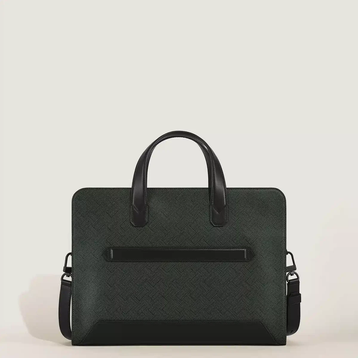 Designed for the modern urban professional, this thin document case seamlessly combines functionality with refined style. Crafted in leather leather and printed with our distinctive Extreme 3.0 motif in multikhaki, an elegant combination of black, noisette and malachite, it showcases an unmistakable design accented by sleek black metal fittings. Ideal for everyday use and professional meetings, it offers ample internal space for A4-sized documents, writing instruments, and other essentials, with a zipped pocket and two pen loops ensuring seamless organisation.