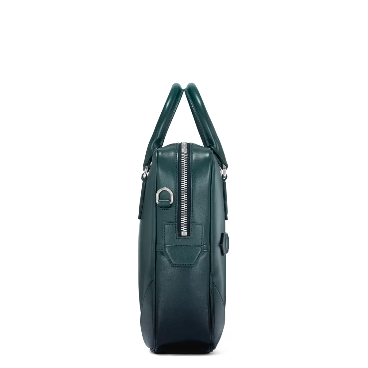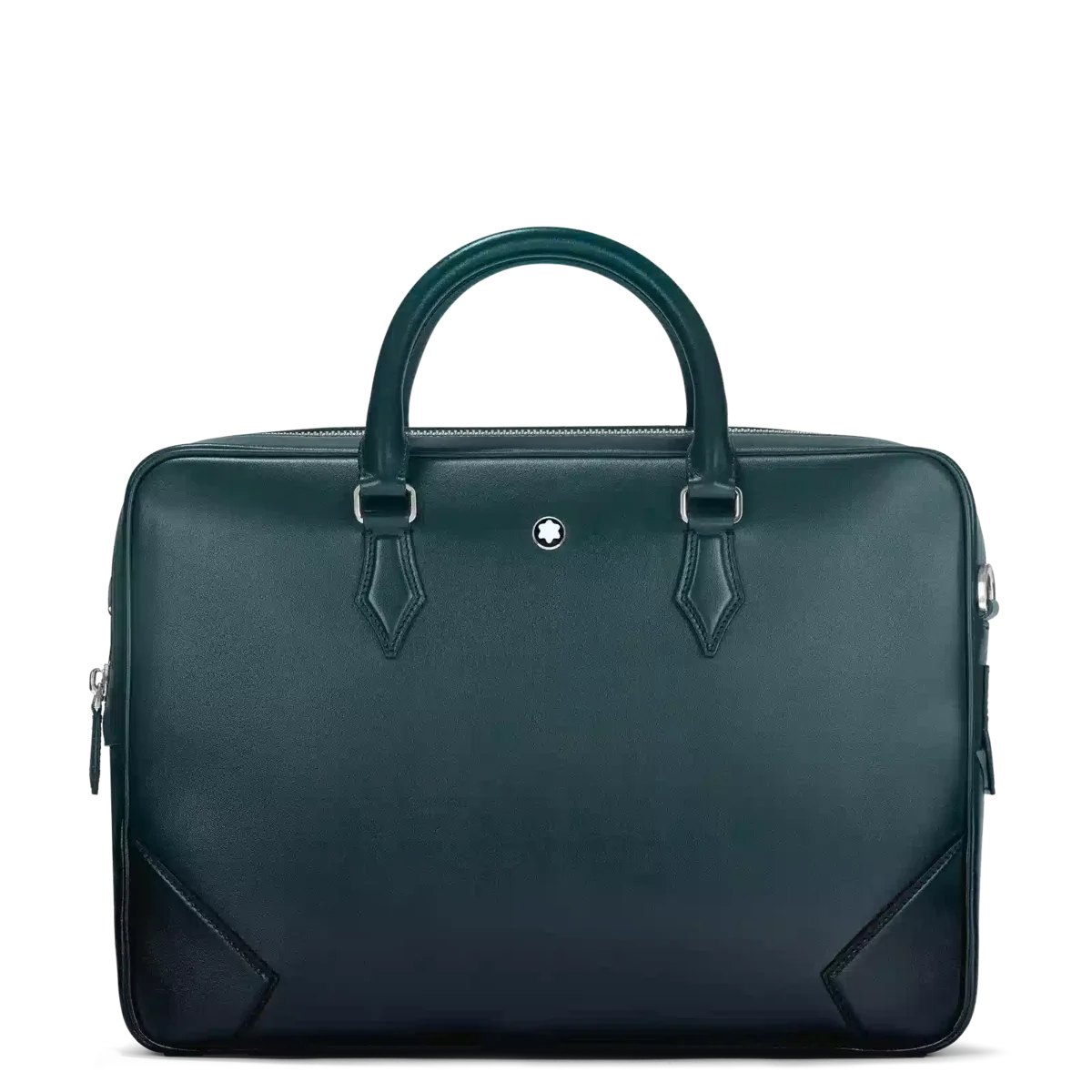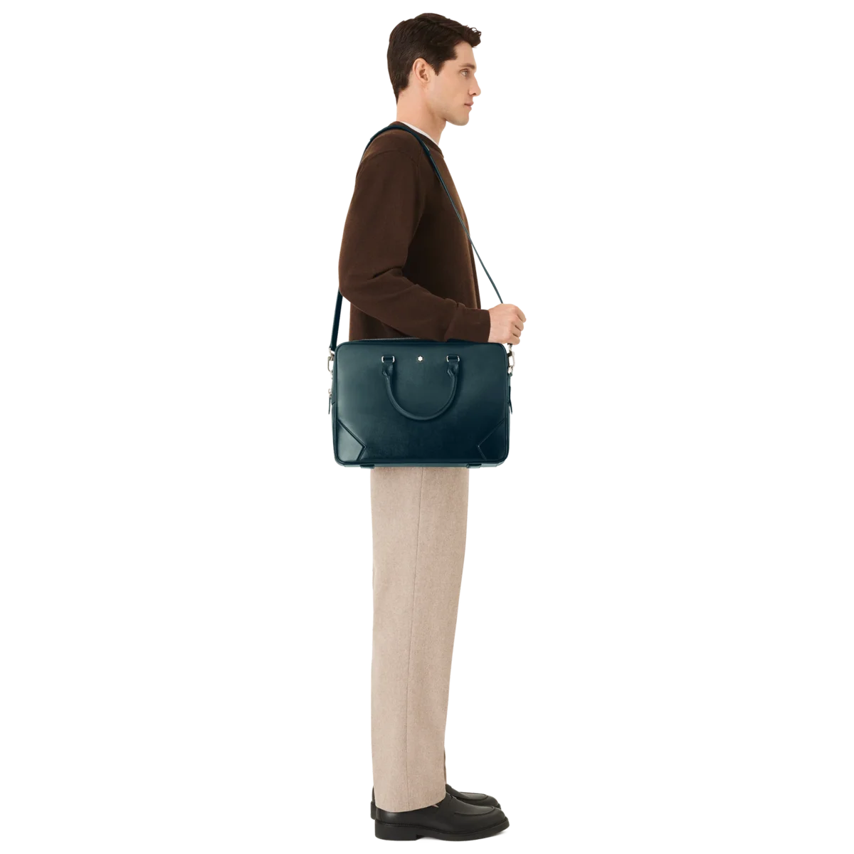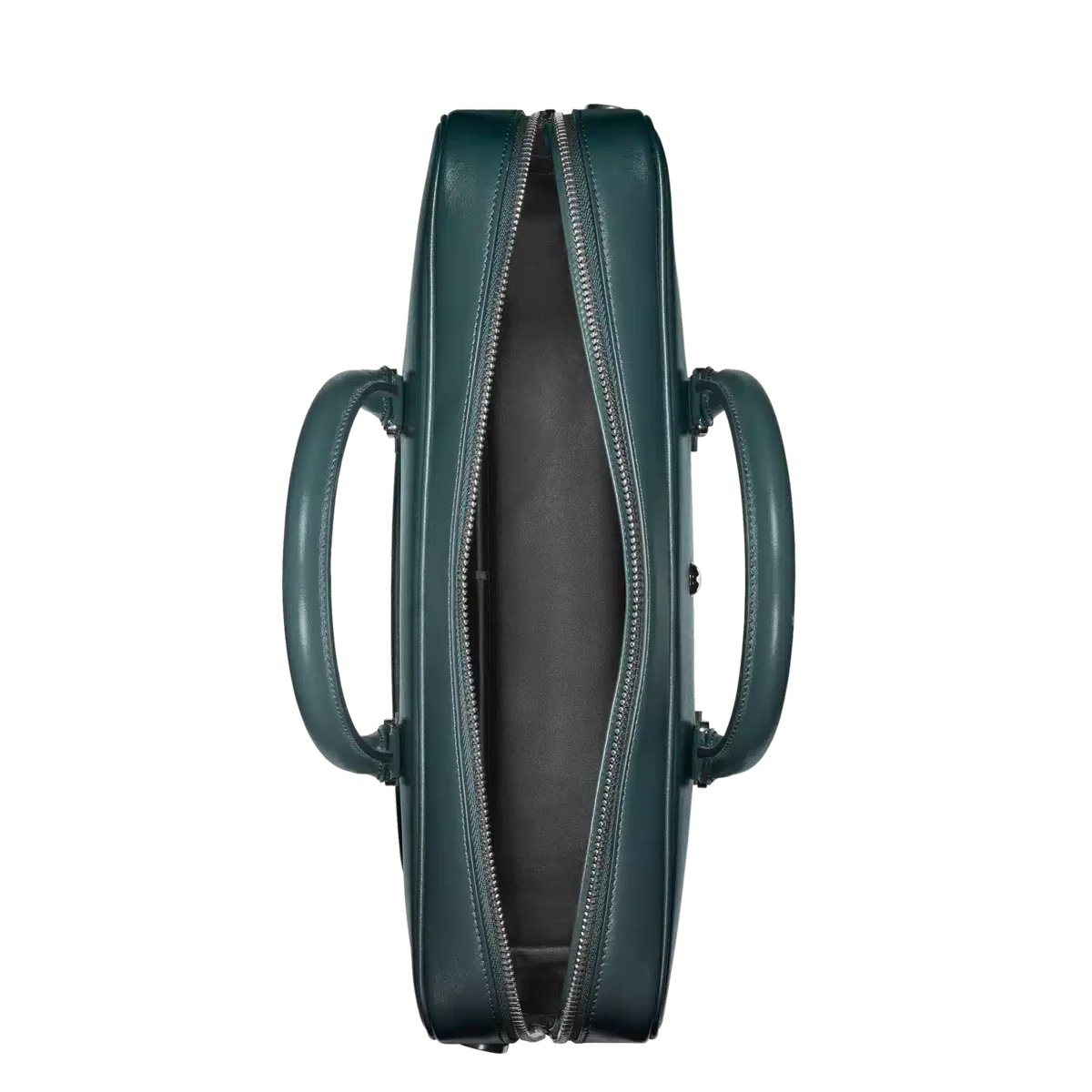 Experience the epitome of refined craftsmanship with our Meisterstück document case, part of our exclusive capsule celebrating a century of Meisterstück craftsmanship. Crafted from British green leather with a sfumato effect, this elegant companion showcases Montblanc’s essence. Drawing inspiration from the nib, the stitching, zip pullers, and handles exude elegance. With leather top handles, a removable shoulder strap, and a satellite system, it offers versatile carrying options. On the inside you can find a large open pocket, zipped pocket, two open pockets, and two writing instrument loops, ensuring seamless organization. Elevate your business trips with this sophisticated document case, fitting a laptop up to 13″.