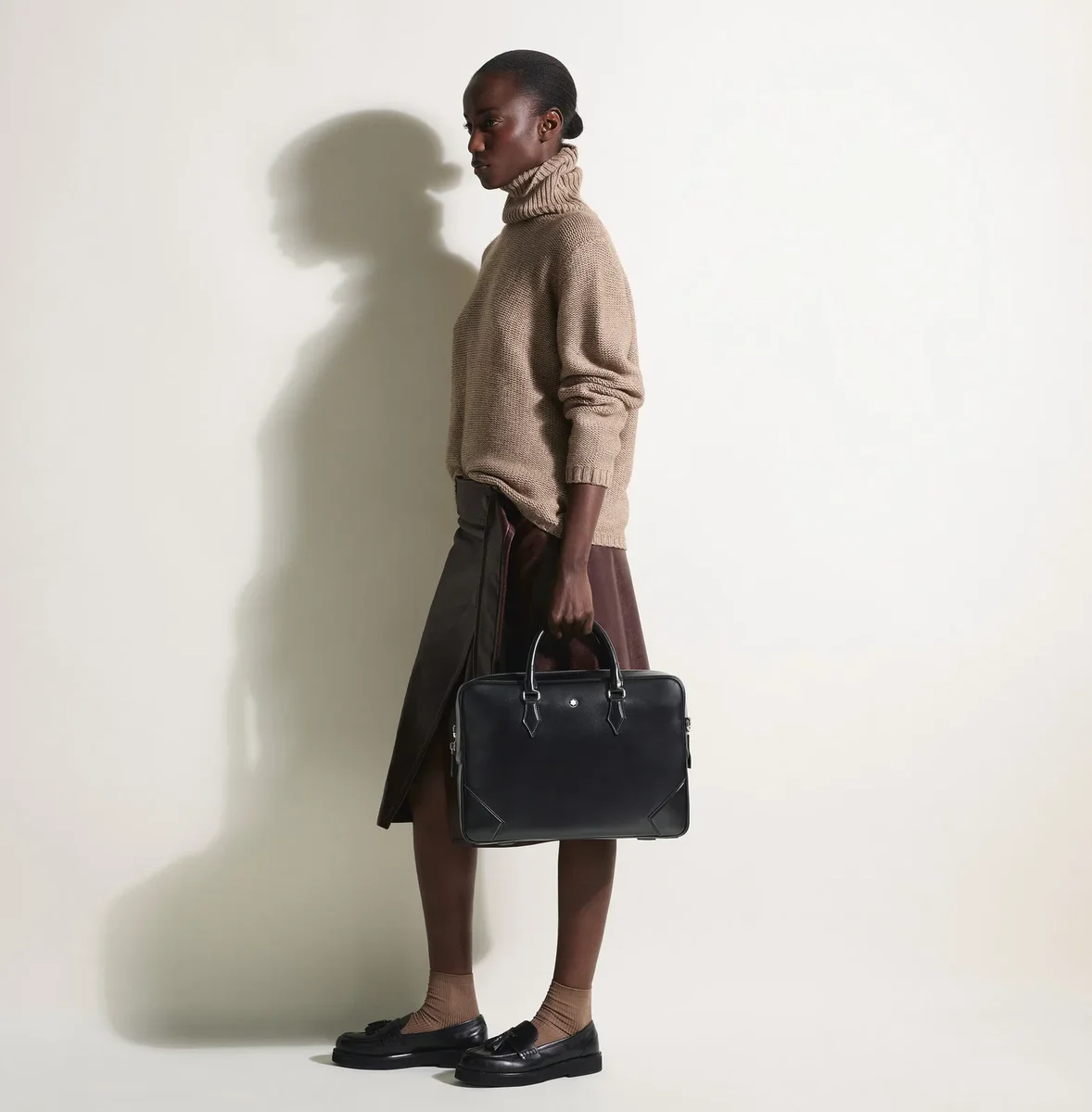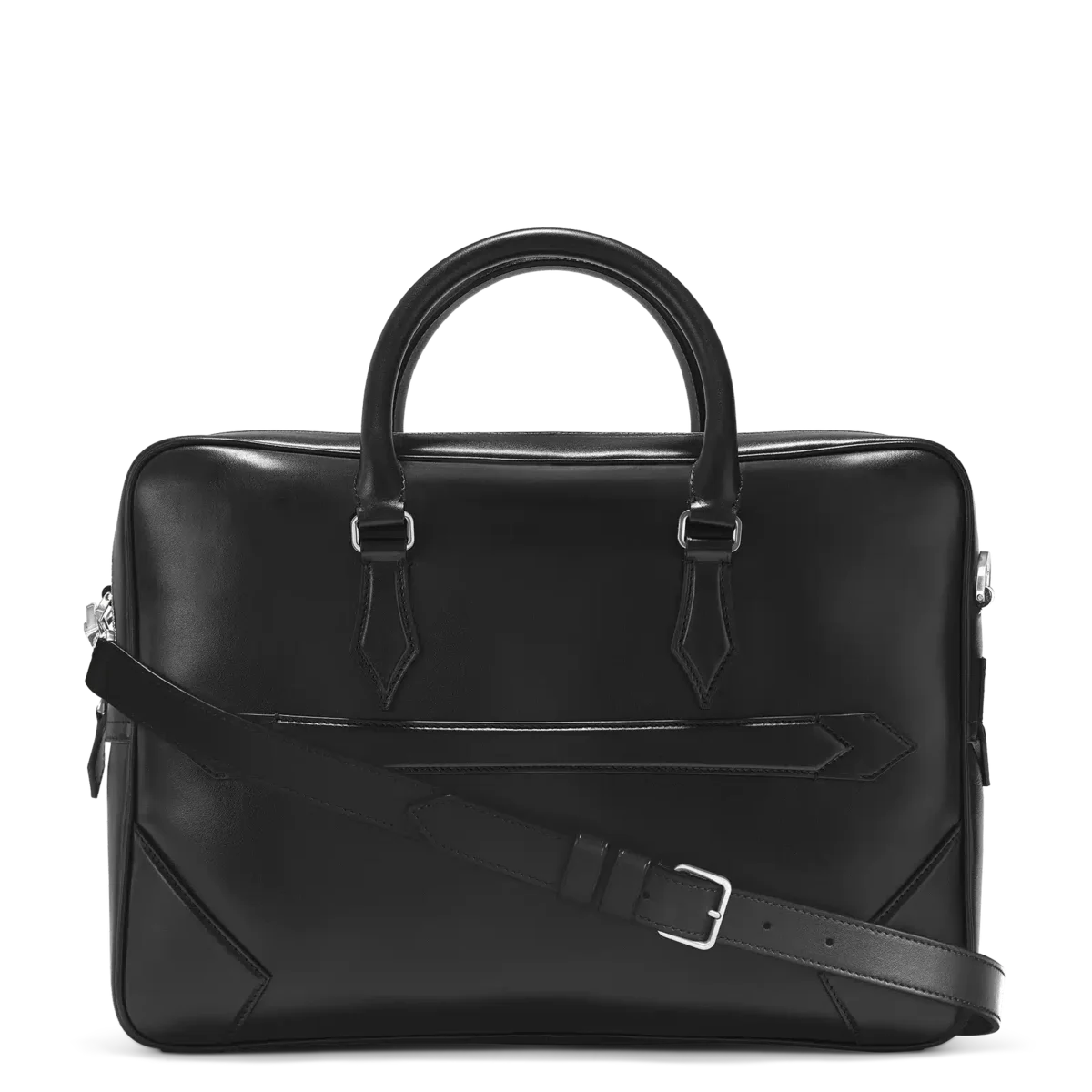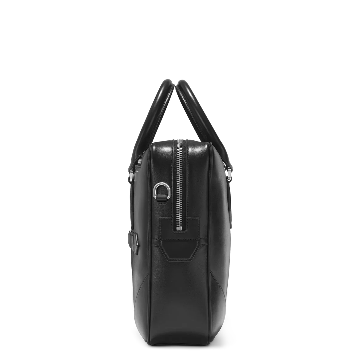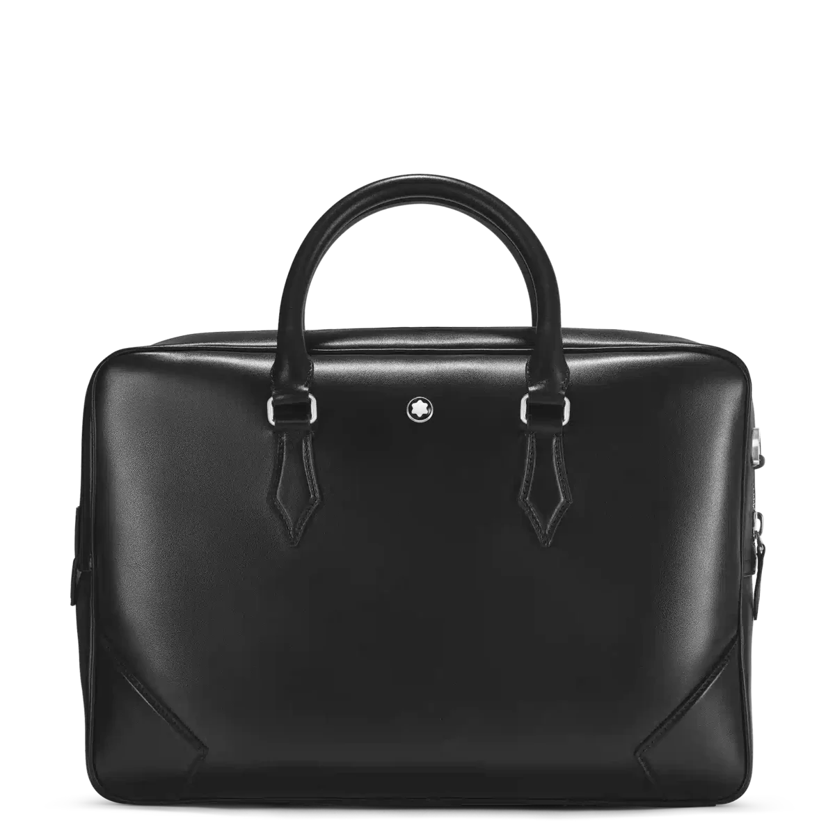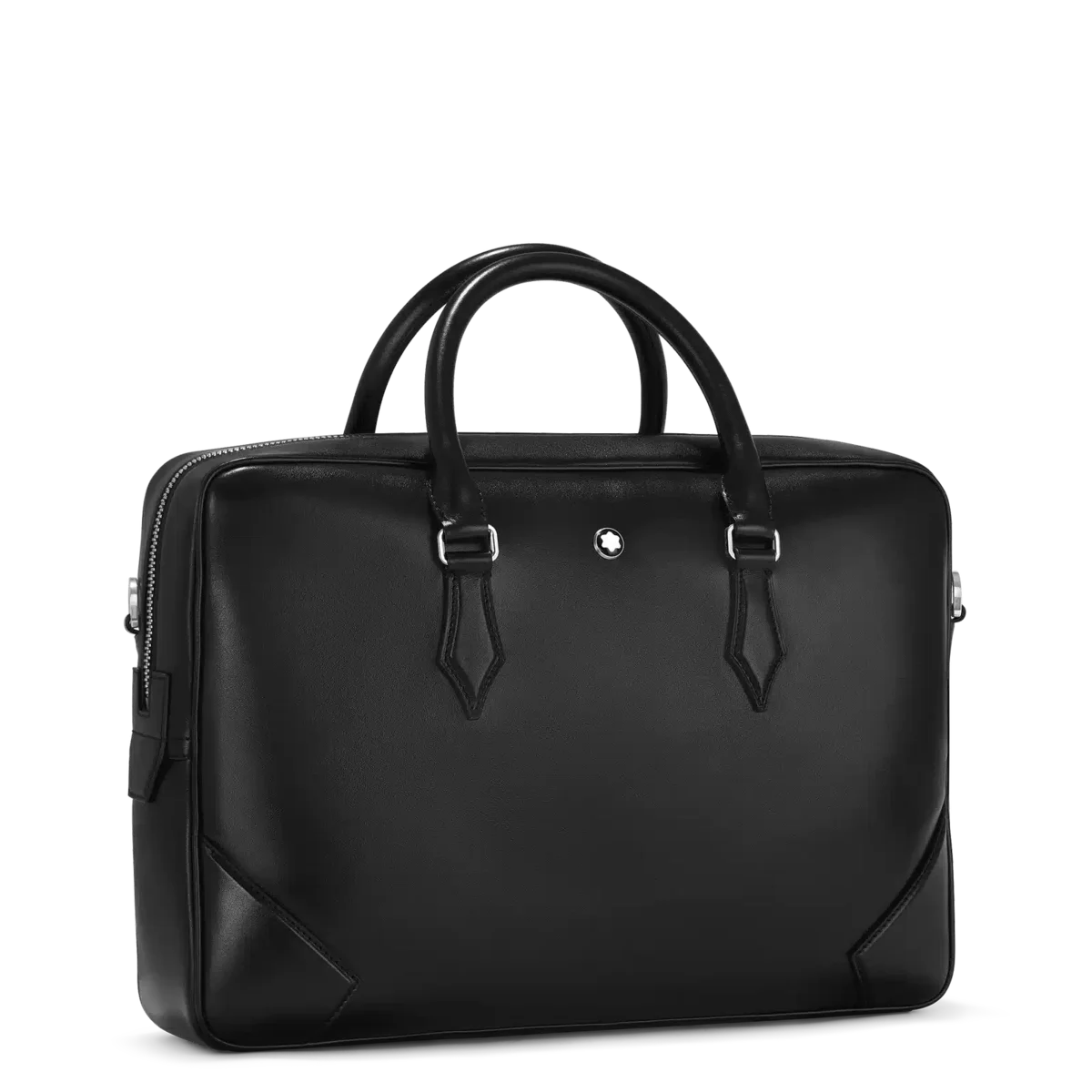 Inspired by the writing culture, the Meisterstück Document Case is an elegant companion for business trips. Crafted from a new deep shine black leather, all its details speak the language of the nib: stitching, zip pullers, handles recall the shape of the nib, the essence of Montblanc. A bigger version of the logo lights up the bag. The leather top handles, the removable leather shoulder strap ad the satellite system offer multiple carrying options, while inside pockets ensure practicality.