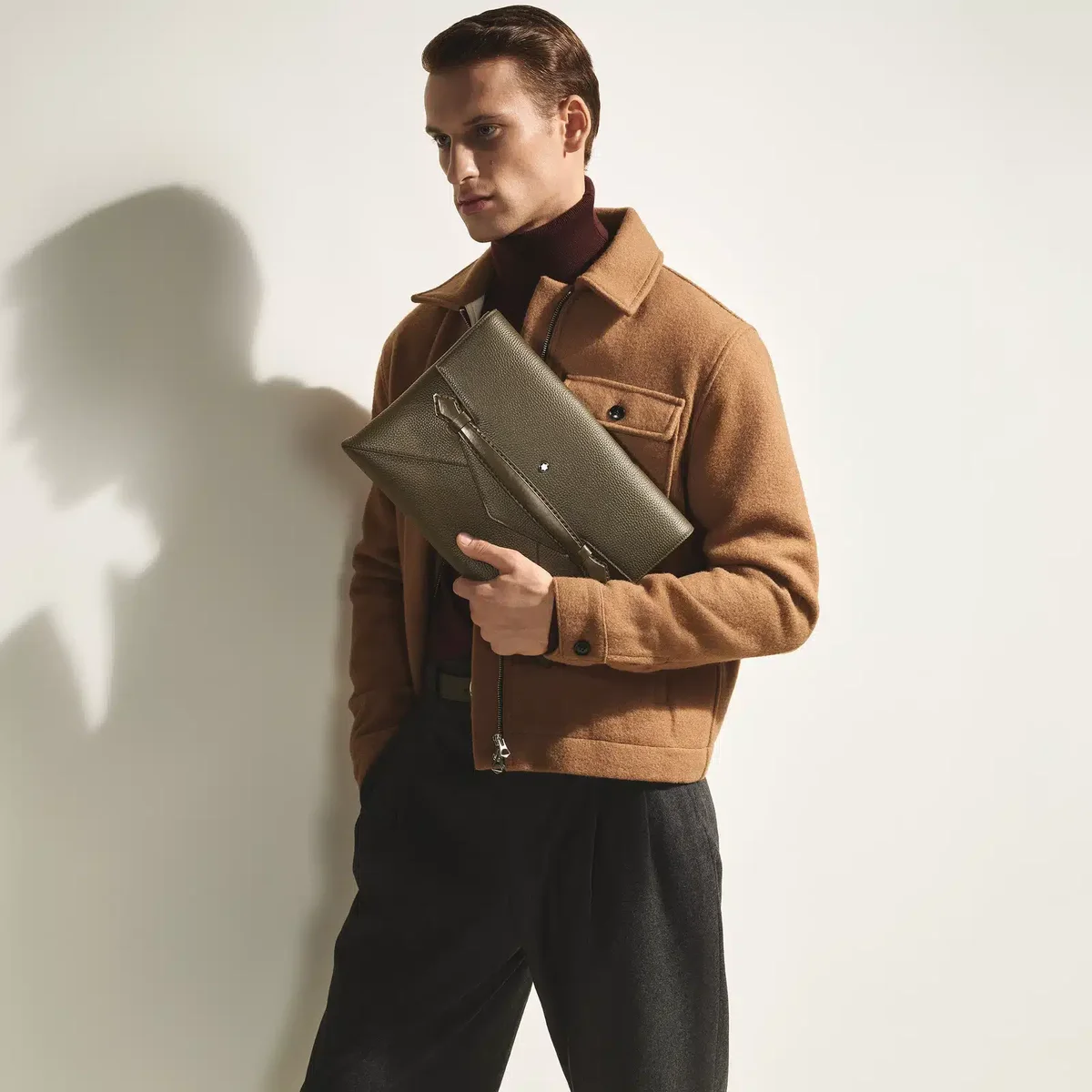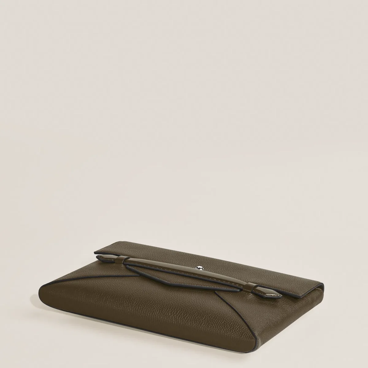 Designed for those who seek elegance in every aspect of their life, this clutch document holder is crafted from khaki grain calfskin leather. Its sleek envelope-inspired shape is elevated by a nib-shaped front handle, adding a touch of Montblanc heritage to the world of modern accessories. The main compartment offers an open pocket and two writing instrument loops for organisation, while the rear pocket ensures easy access to essentials.