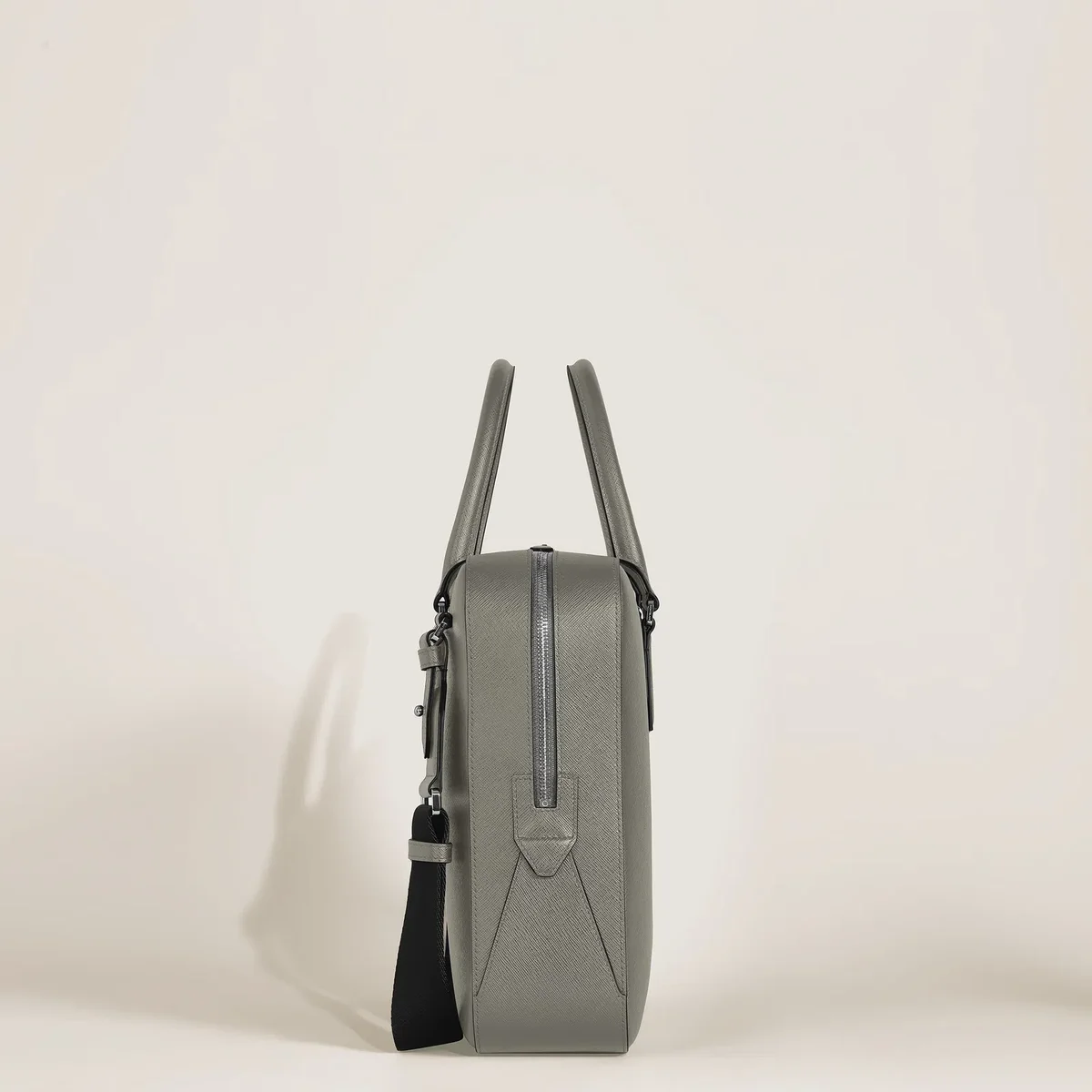 This elegant case features a spacious main compartment for transporting A4 documents, electronic devices, and other professional necessities in style. Your writing instruments can be stored in dedicated pockets, while the adaptable modular design allows for attachment to other Sartorial collectionbags. The luxurious printed leather in medium grey ties it all together giving it an air of sophistication.