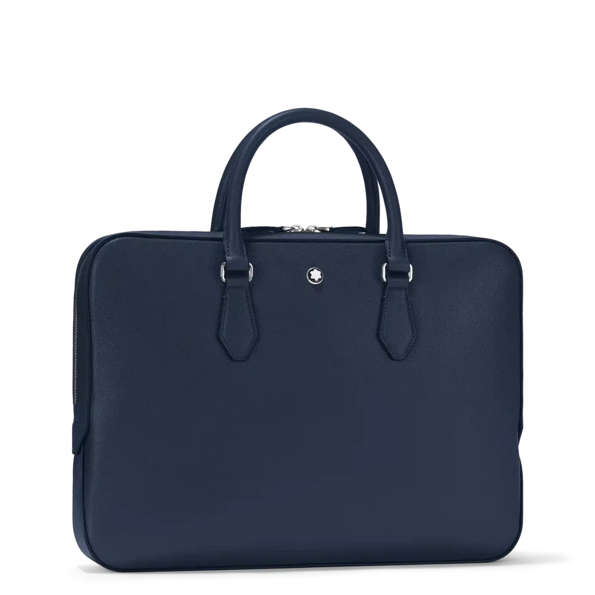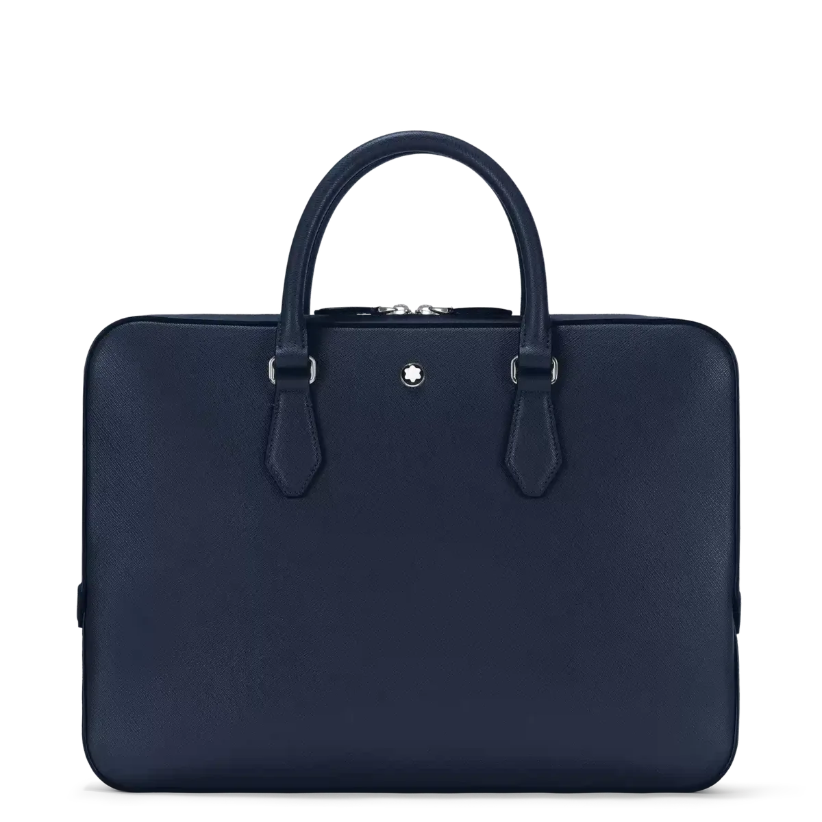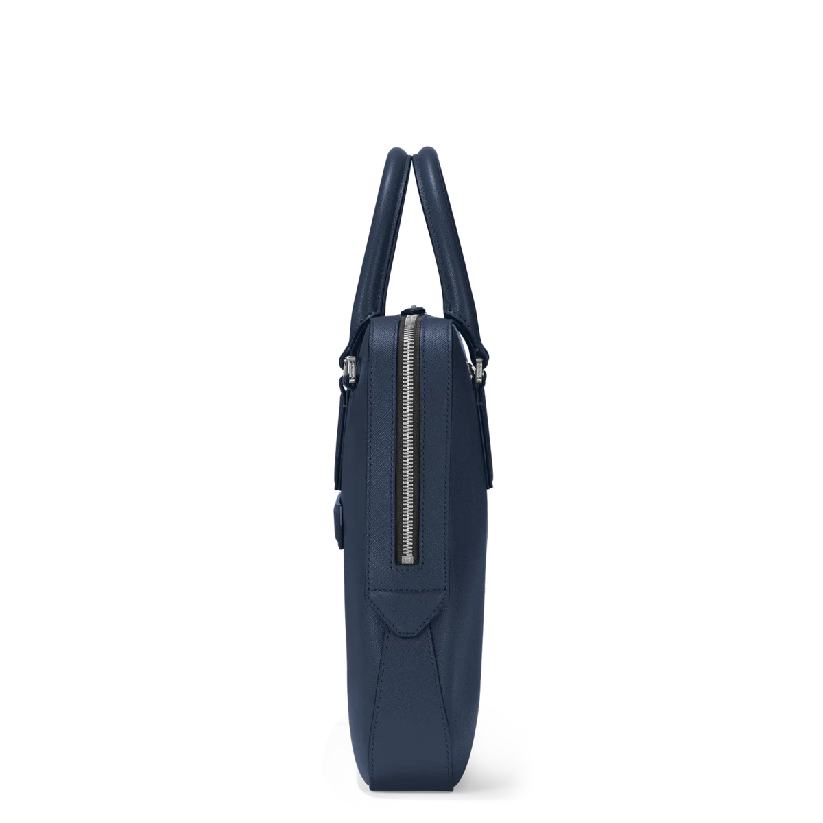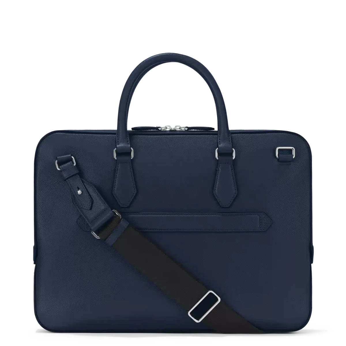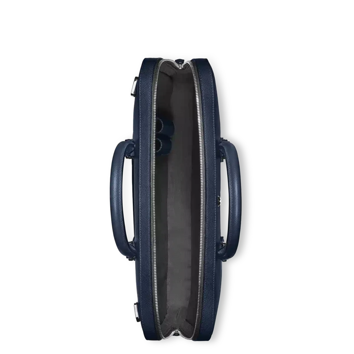 Slim and stylish, this document case lends a sophisticated note to business ensembles. Designed in luxurious ink blue leather with modular functionality, personalize your case to suit your own style by attaching smaller accessories. Key details include handles shaped to honor the beauty of handwriting, as well as the Montblanc emblem in a new larger size.