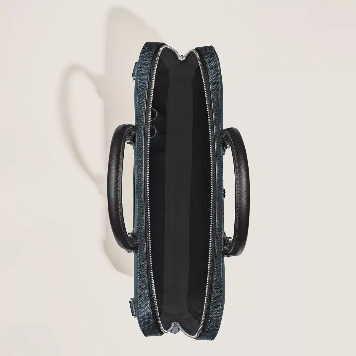 This thin document case combines Montblanc’s writing heritage with sleek, modern functionality. Crafted from two-tone embossed Sartorial leather in black and blue, it is tailored for business needs. The spacious main compartment offers ample room for A4 files, electronic devices, and writing instruments. The detachable, adjustable strap provides versatile carrying options, making it a refined and practical choice for professionals.