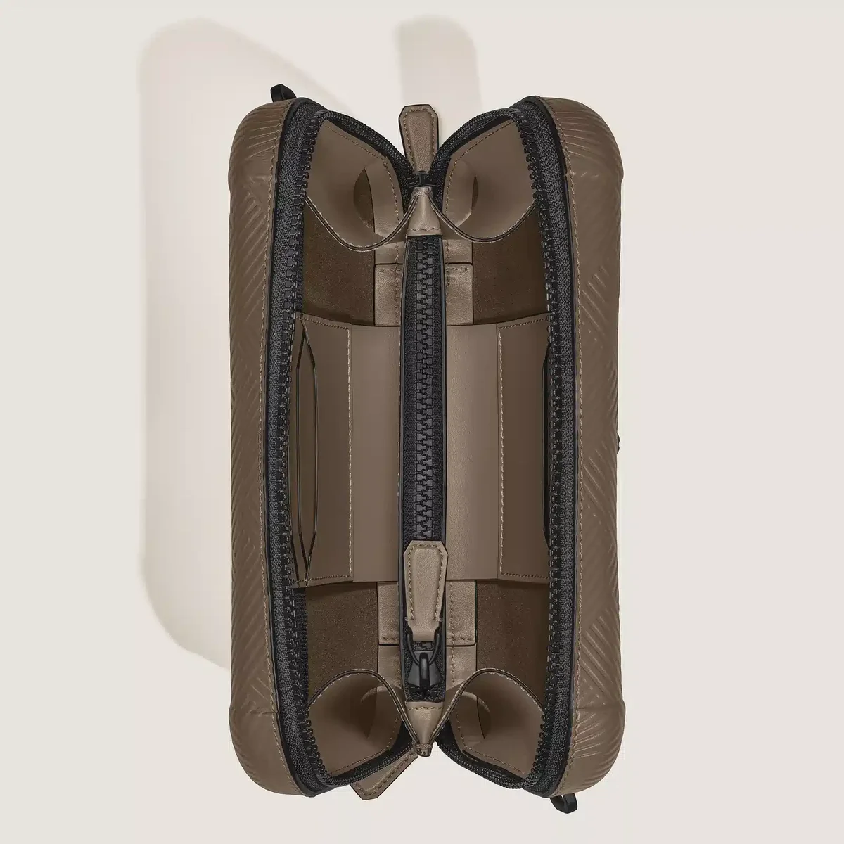 Introducing the Extreme 3.0 travel case – your essential city companion, enhanced with a satellite system for seamless attachment to your luggage ensemble. Crafted from full-grain bovine leather in an elegant noisette colour, this bag features the Montblanc emblem set against a palladium-finish ring for an extra touch of luxury. Inside, practicality prevails with a zippered main compartment and six credit card slots. An adjustable and detachable shoulder strap offers adaptable comfort wherever you may travel.