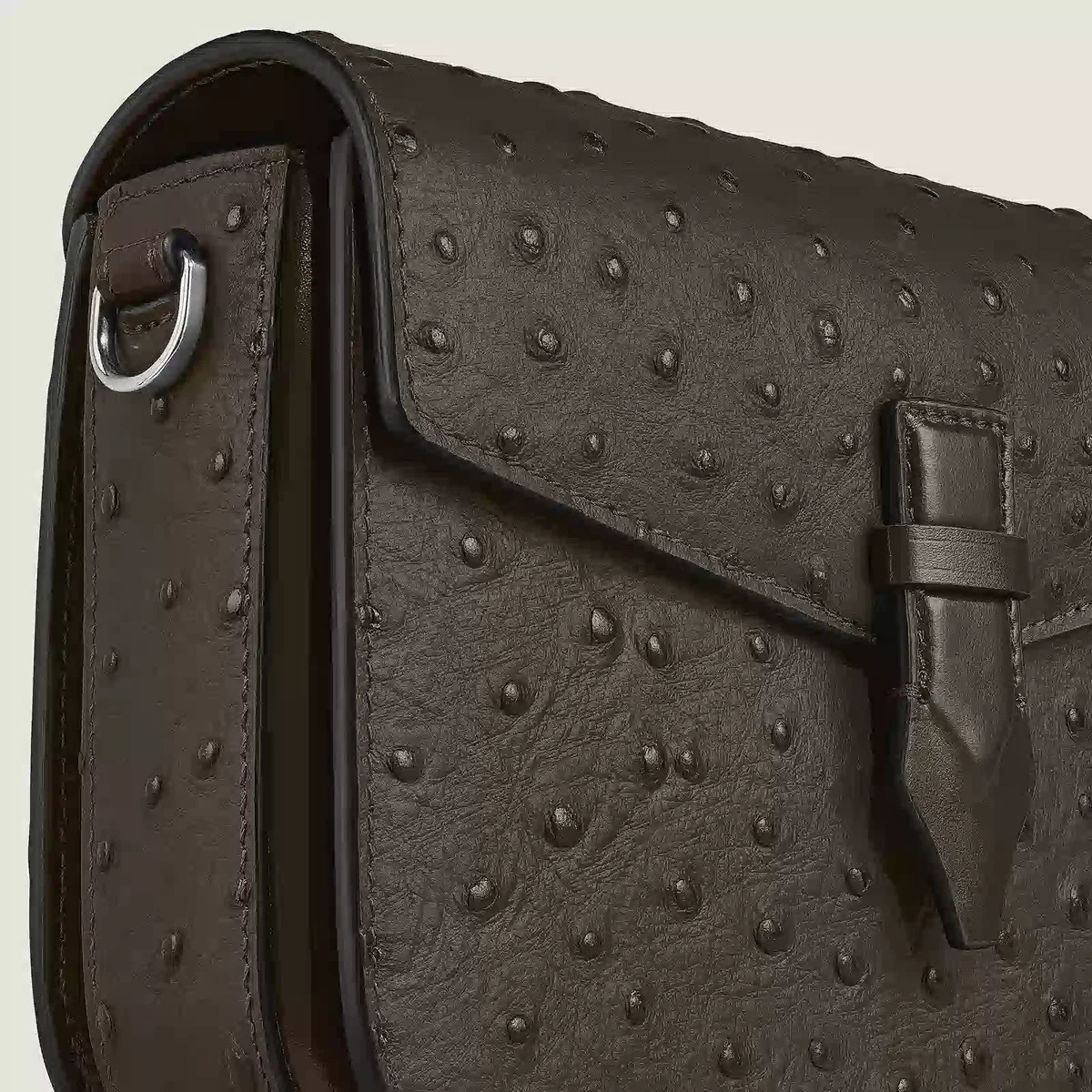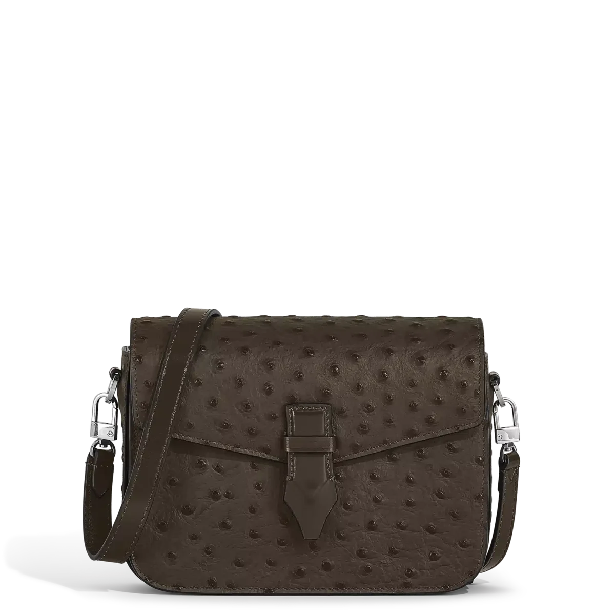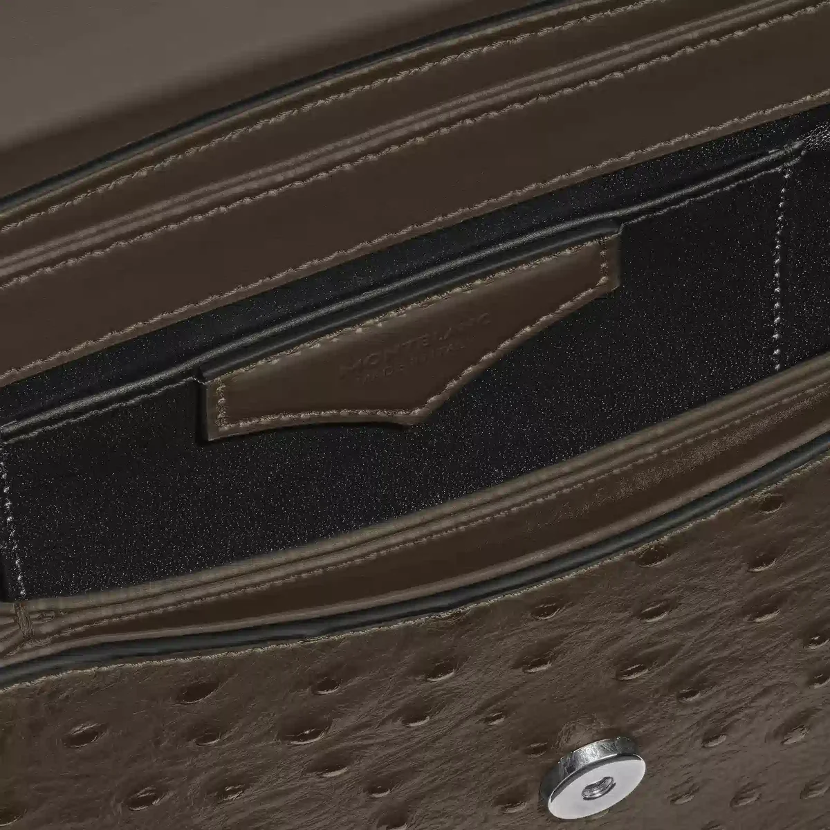 Discover our ostrich-embossed crossbody bag, crafted in a stylish khaki leather. Versatile and eye-catching, it has three compartments and an internal open pocket for optimal organisation. Its unique nib-shaped flap closure is an homage to Montblanc’s writing tradition, while the adjustable and detachable shoulder strap offers versatile carrying options. This bag is an epitome of Montblanc craftsmanship, where the heritage of writing culture is beautifully embodied.Please note that this product contains magnets. Before using it, please consult the magnet section in the Service Guide leaflet accompanying the product or the Customer Service section on the Montblanc website. If you have any concerns, please consult your health care professional.