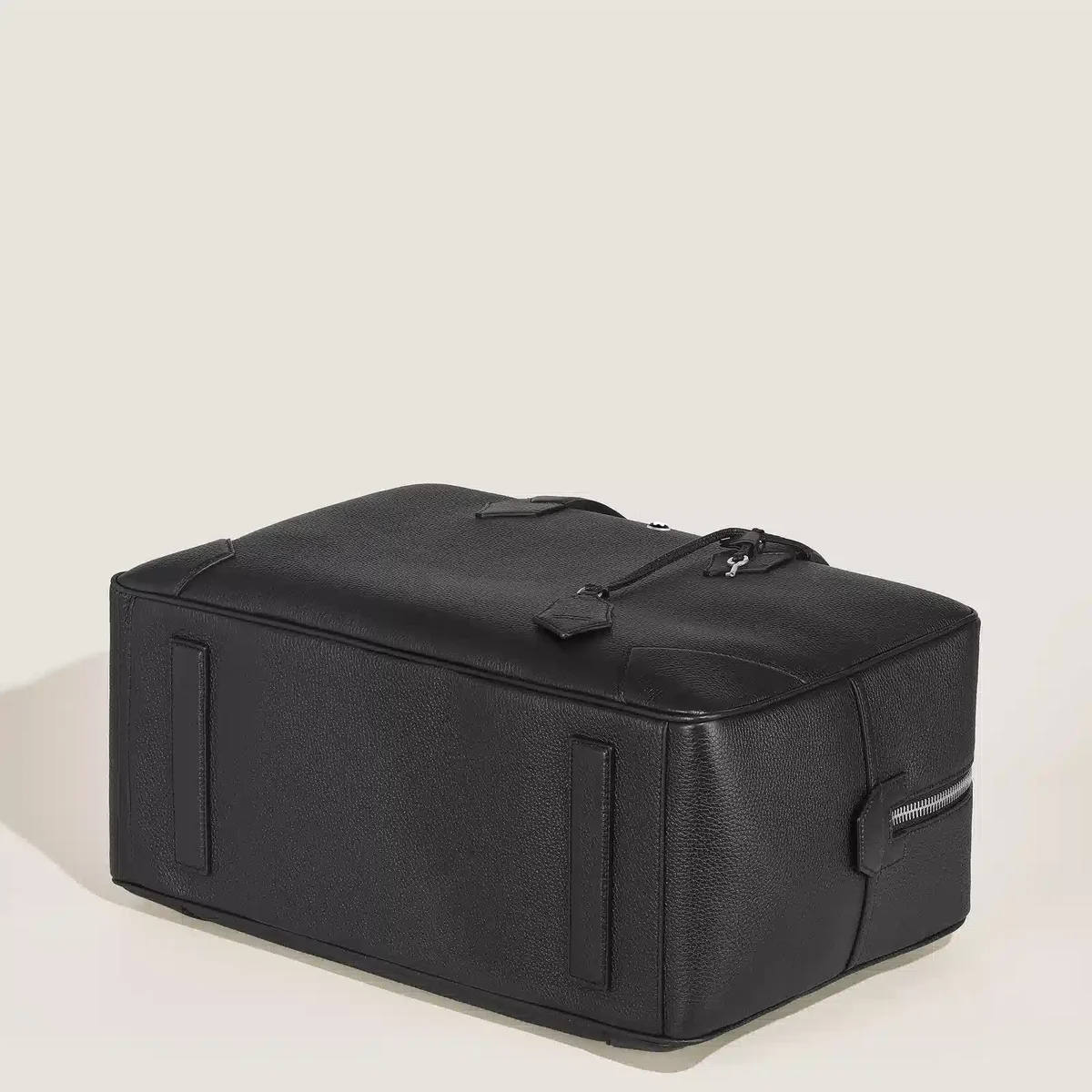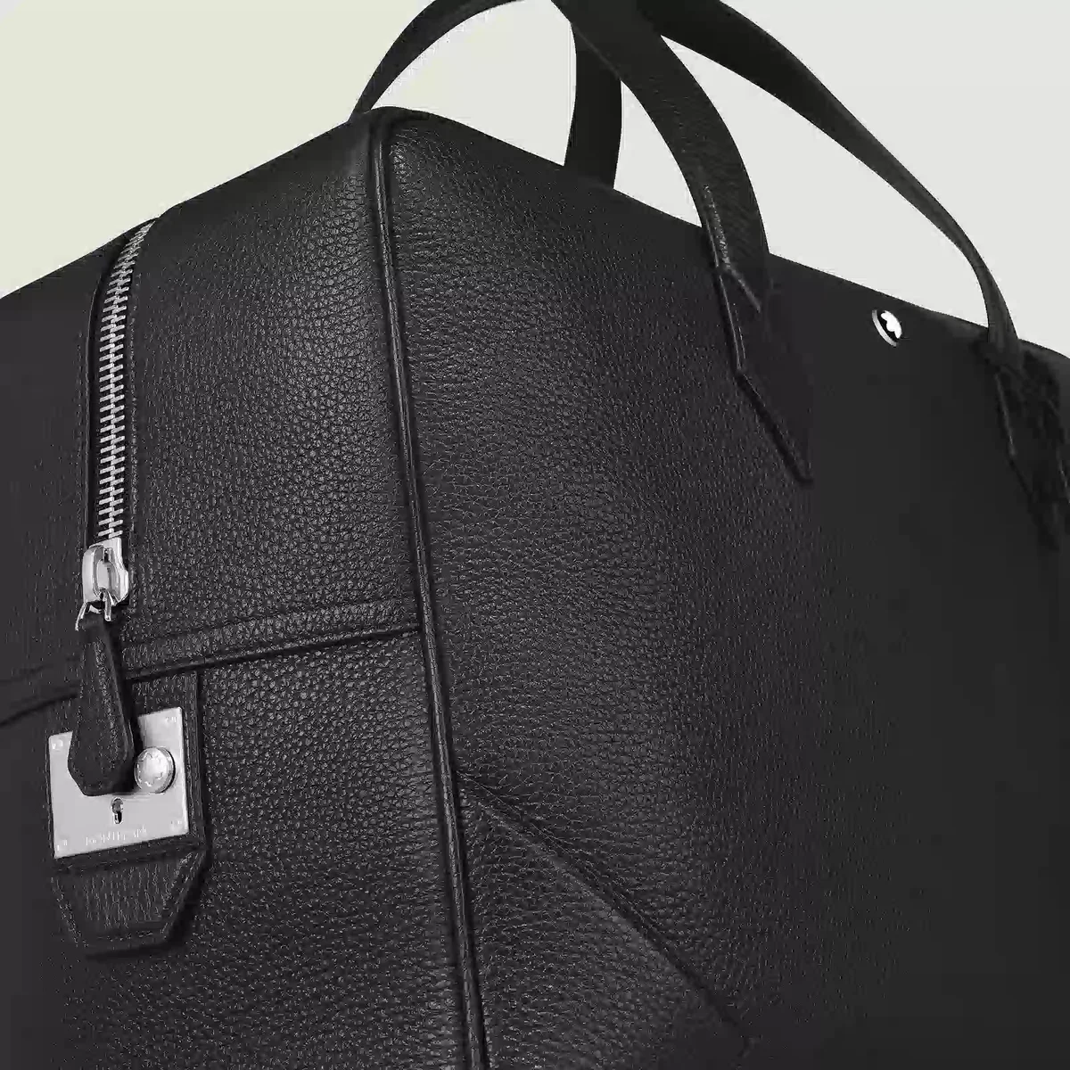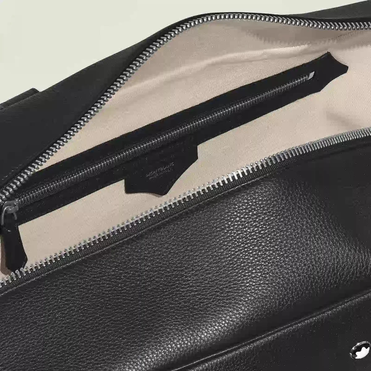 An elegant companion for a short trip or a weekend getaway, the Montblanc 149 bag boasts spacious interior, one zipped and two open pockets, and a special loop for your writing instrument loop. The elegant texture of the soft grainy leather in black offers a touch of luxury, while the external lock and key closure bring extra security to your belongings.