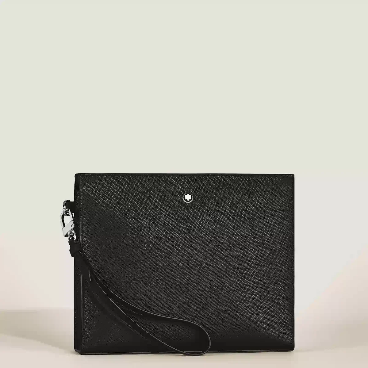 Carry your daily essentials in this sophisticated Sartorial pouch. Crafted from Saffiano-printed leather in an elegant black, its main compartment houses an extra open pocket for added convenience. Hold it by hand, tuck under the arm, or loop it around your wrist with its detachable handle.