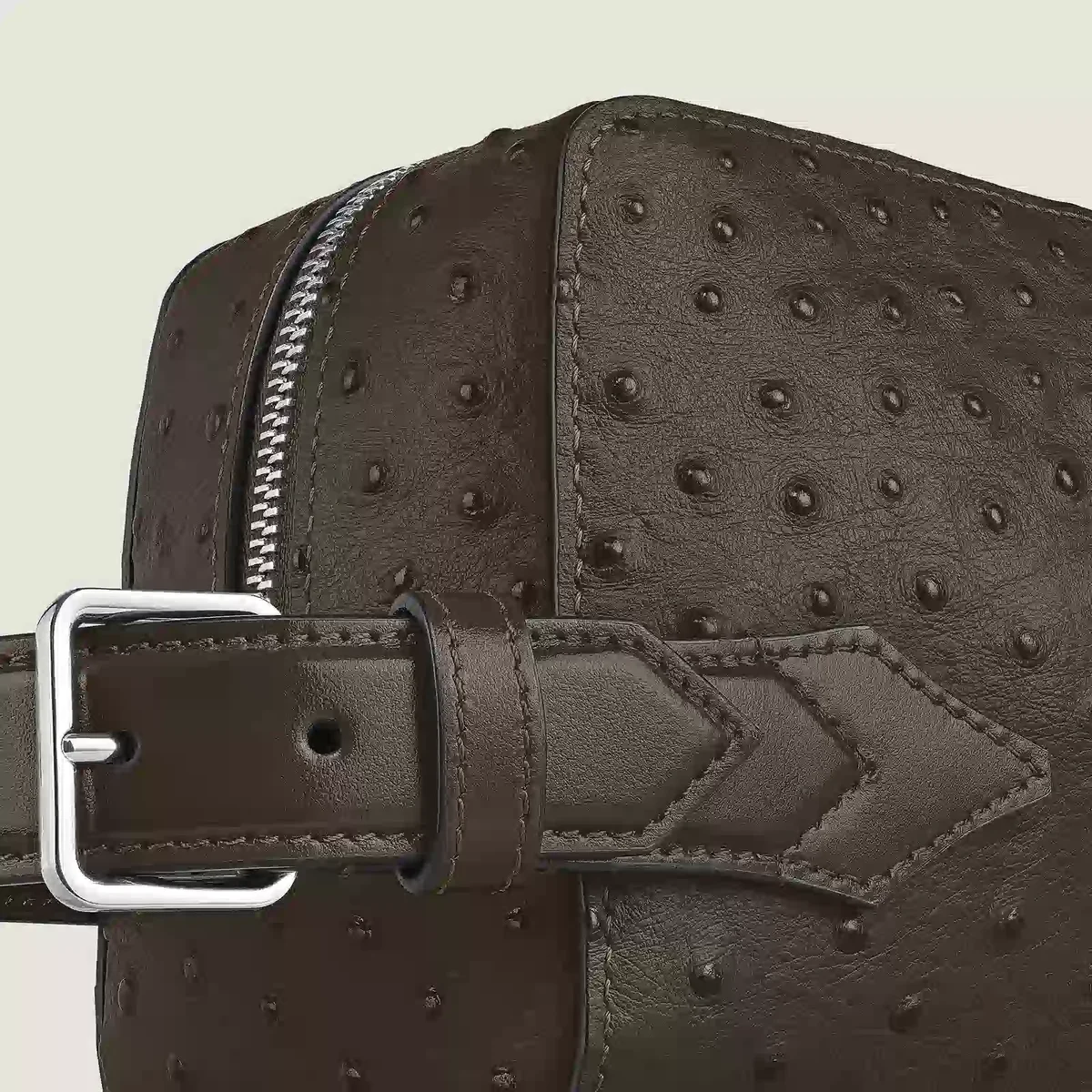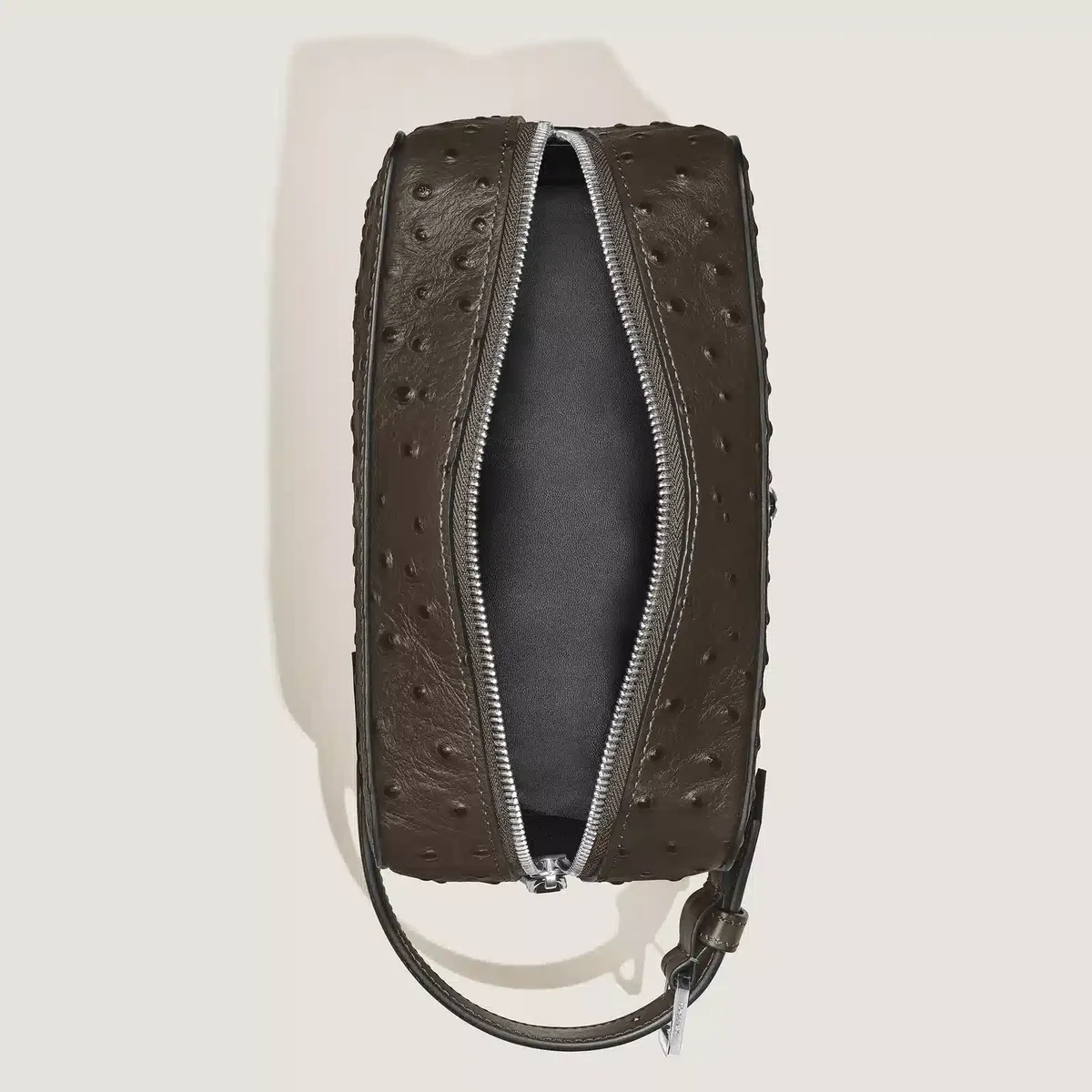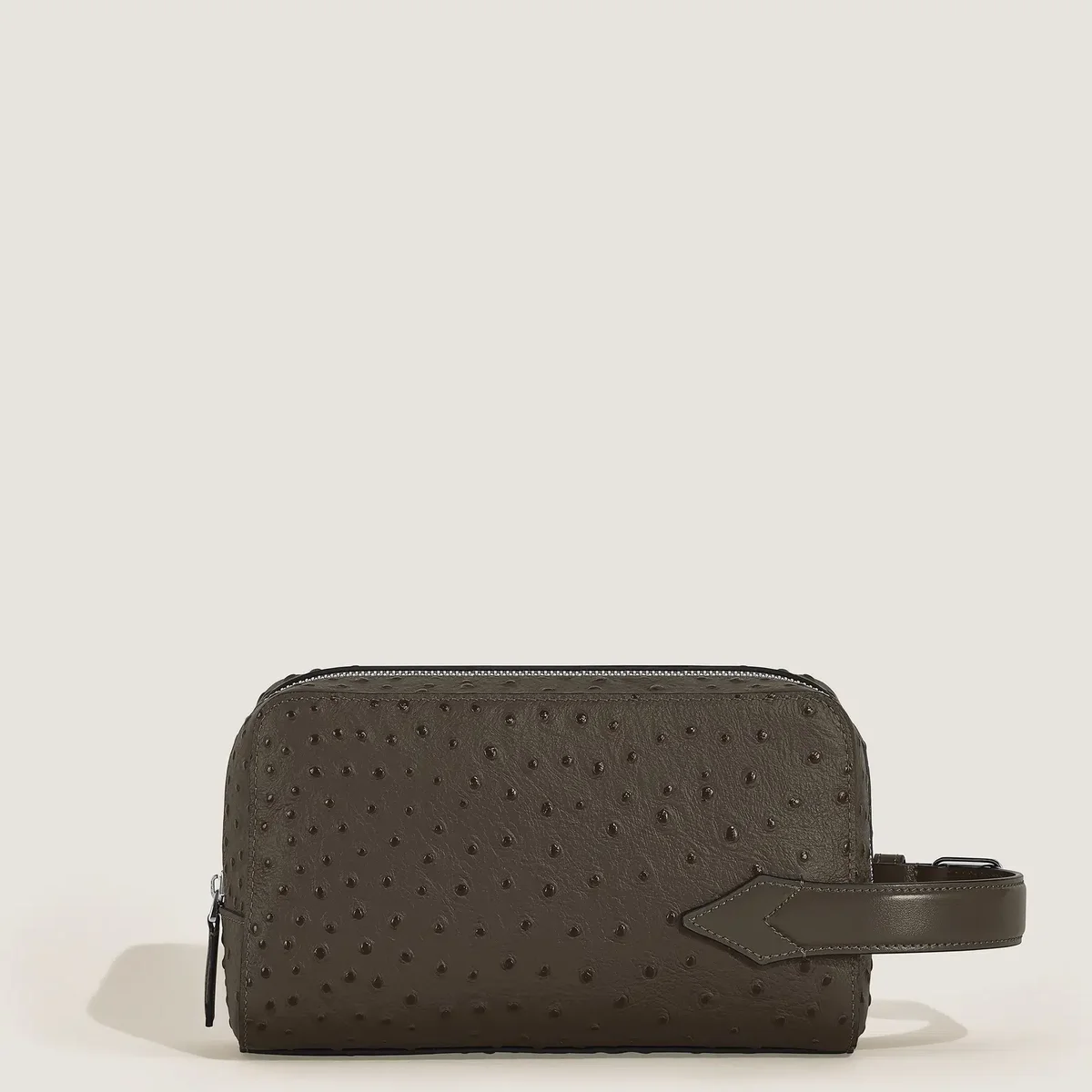 With the art of writing at its core, the new clutch bag is crafted from stylish khaki ostrich-embossed leather. Corner details bring a distinctive and refined touch to its design. Perfectly sized for daily essentials, it features a main compartment with an open pocket and a detachable wrist strap, combining elegance with versatile functionality.
