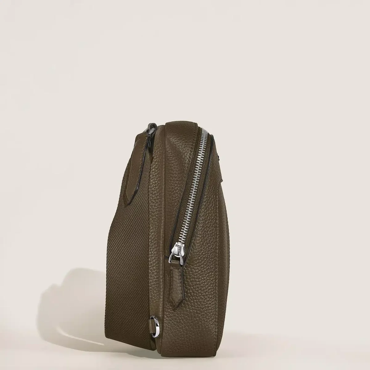The everyday bag is crafted from supple khaki grain leather with soft, elegant shapes, designed for those who value effortless luxury and easy accessibility. Perfect for casual, on-the-go style, it t features nib-shaped zips and its home to a main compartment with three card slots and an open pocket, plus an exterior zipped pocket for essentials. With its detachable, adjustable strap, this bag offers a sophisticated way to keep your belongings close and accessible.