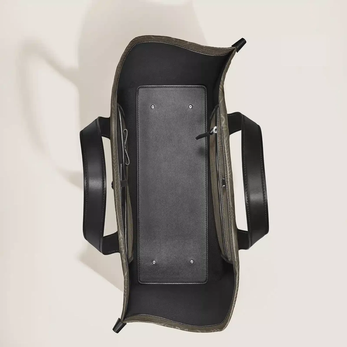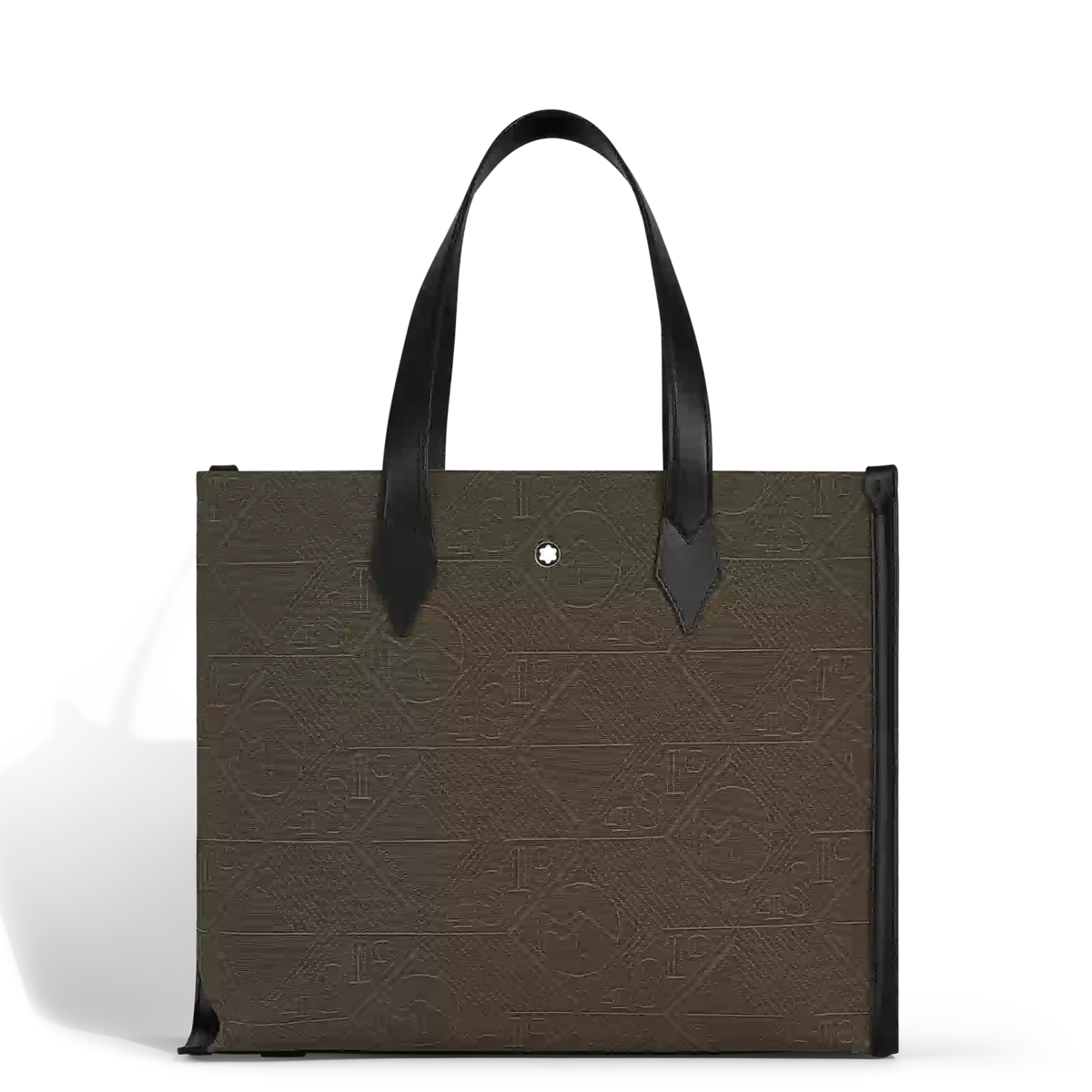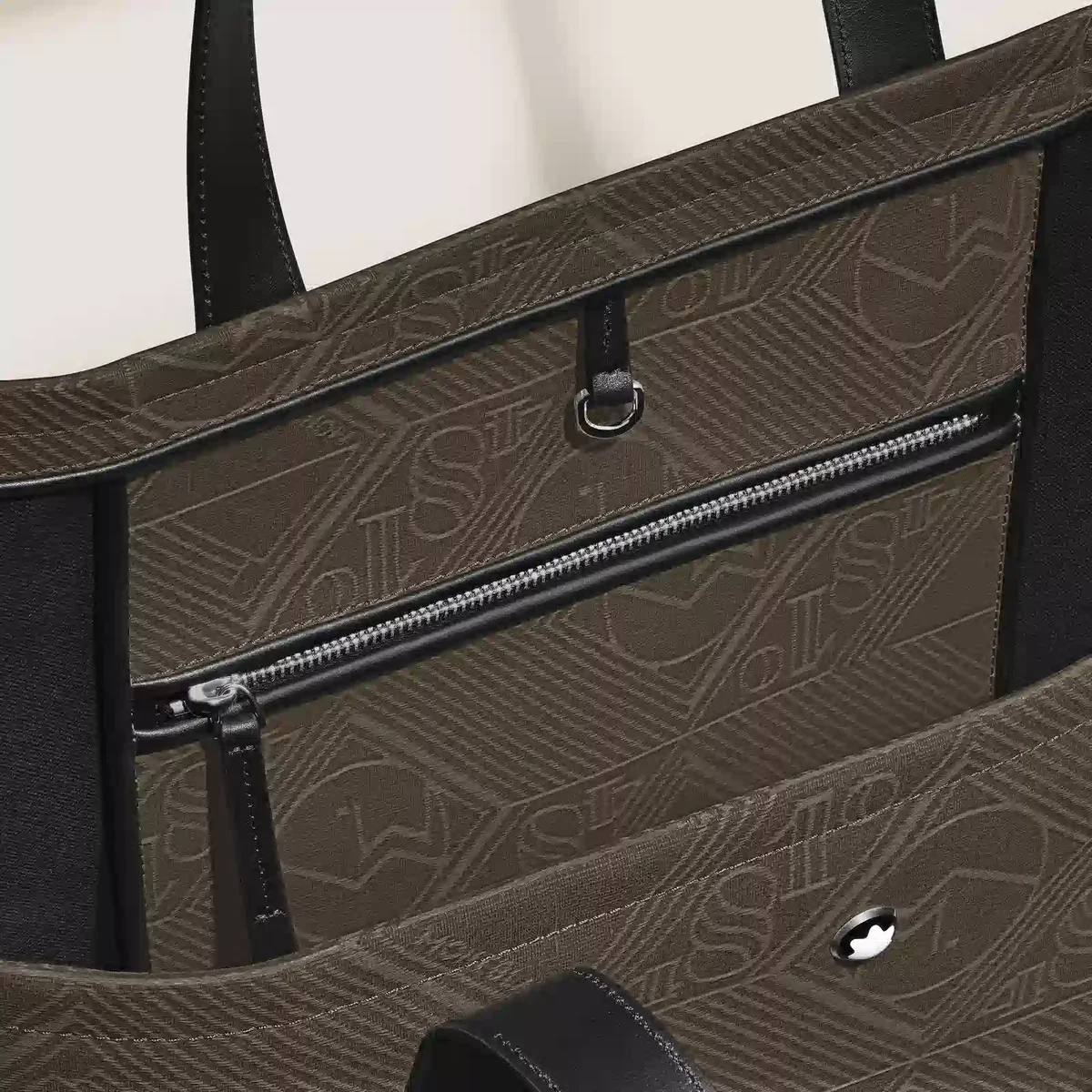 As part of Montblanc’s most exclusive line, this medium tote showcases soft shapes elevated by the innovative 4810 jacquard material. The textured, three-dimensional pattern takes inspiration from Montblanc’s archival Art Deco designs, the architectural lines of Montblanc Haus, and the iconic 4810m peak of Mont Blanc. Crafted through meticulous jacquard weaving, piece dyeing, and a stone-washing process, the fabric’s khaki tone exudes a sophisticated, lived-in charm. Designed for both style and practicality, it features nib-shaped black leather handles. The spacious interior includes a zipped pocket, two open pockets, 2 writing instrument loops.
