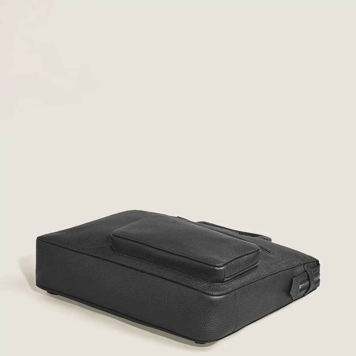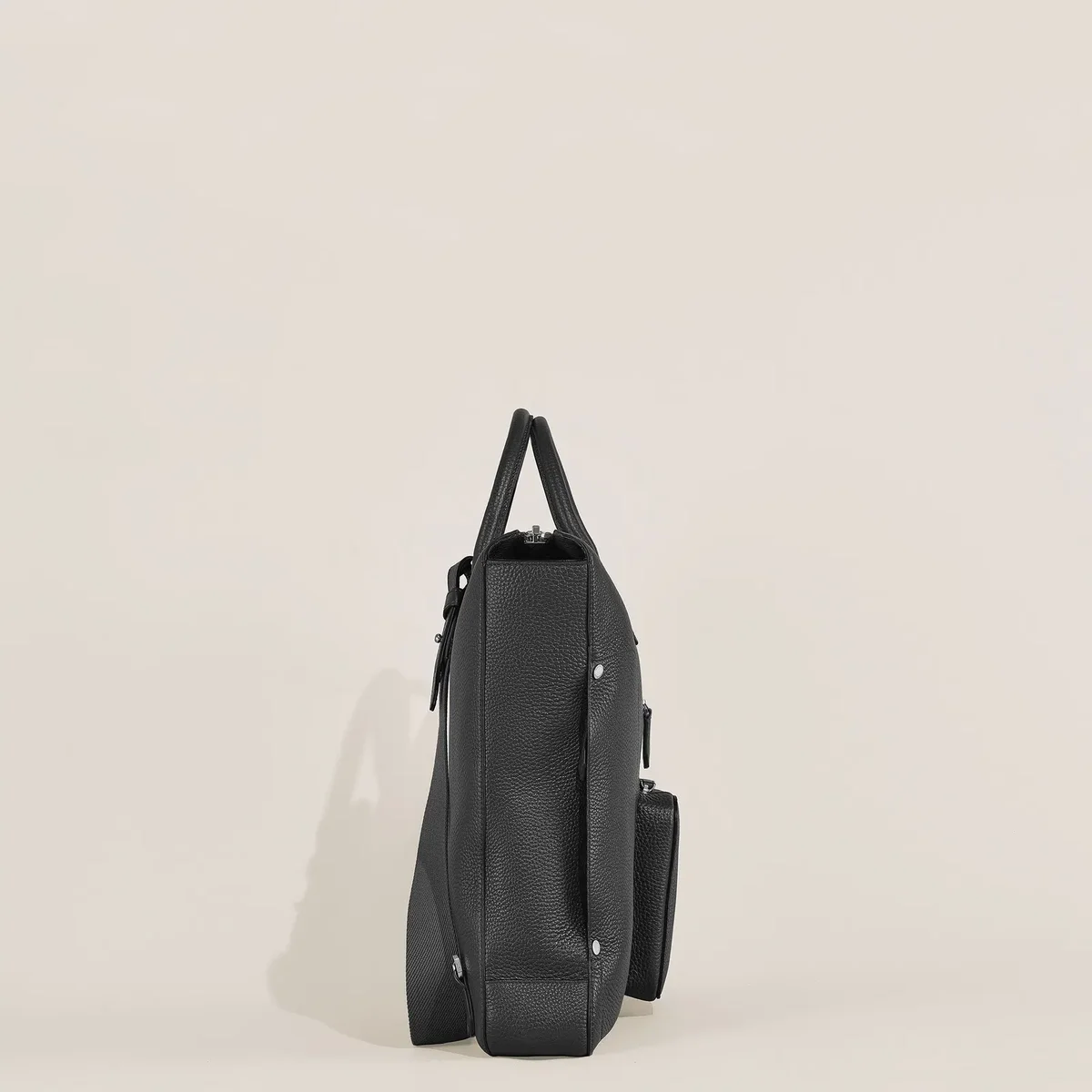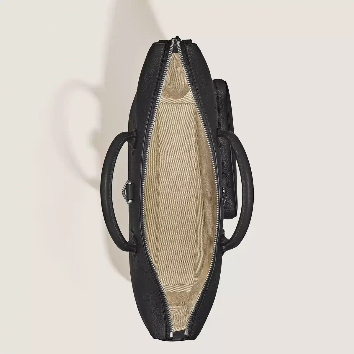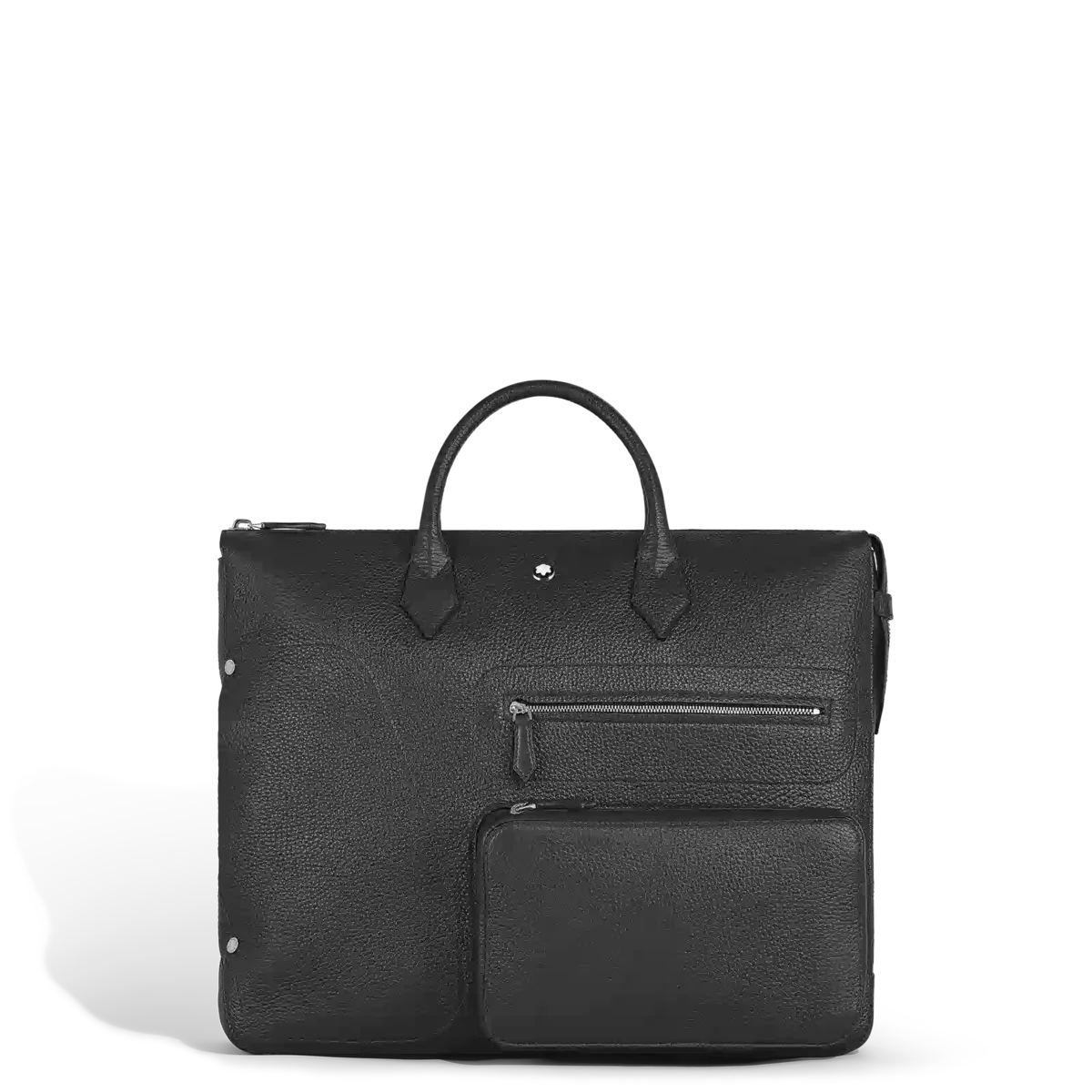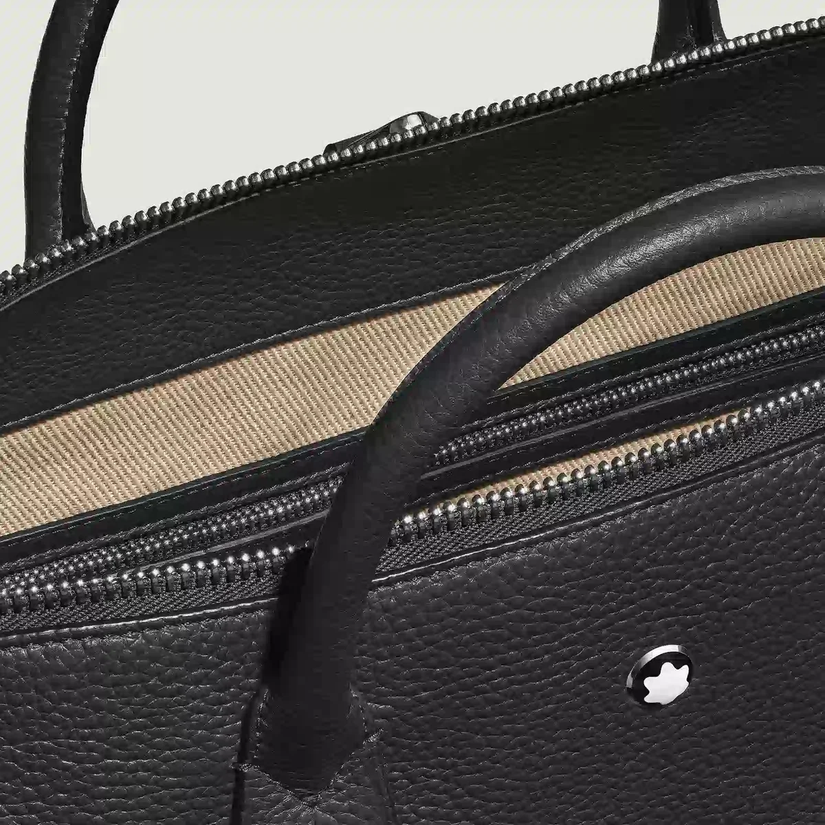 The 24/7 bag redefines luxury with its soft shapes and innovative design. Crafted from Montblanc’s finest black grain leather, this bag features an illuminated emblem, paying homage to the origins of the Montblanc star. Thoughtfully constructed, it includes external pockets to keep essentials within easy reach and showcases signature details such as nib-shaped zips, snap buttons, and refined stitching. Designed for versatility, the bag offers two top handles and two detachable straps, allowing it to effortlessly transform into a backpack.
