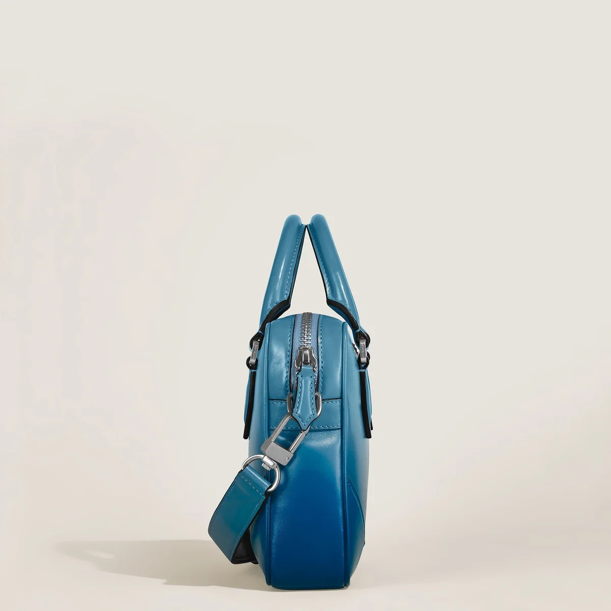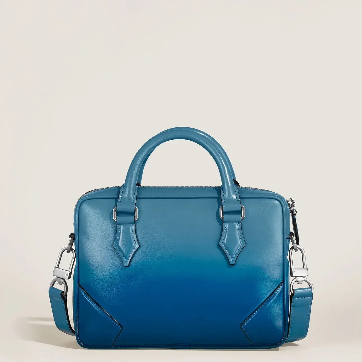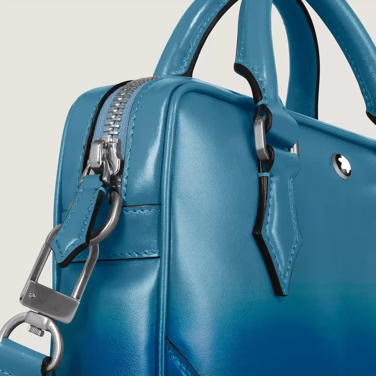 The Meisterstück mini document case, hand-crafted from soft leather in beautiful smoky blue, offers an exceptional carrying experience. Enhanced with a manually applied sfumato effect, it features a main compartment for daily necessities and a zipped pocket for organising smaller items.