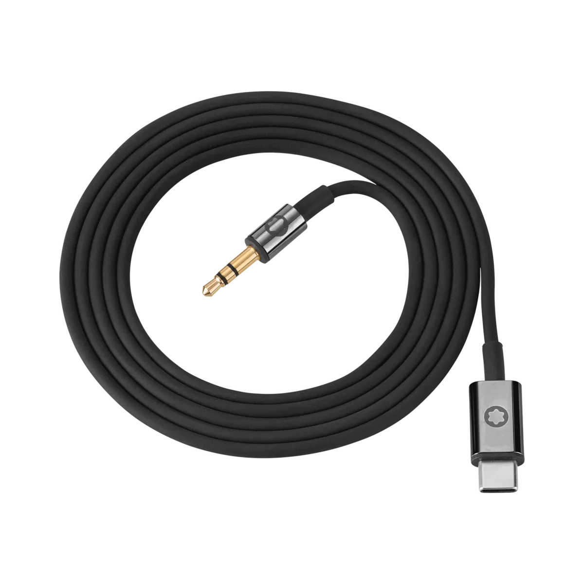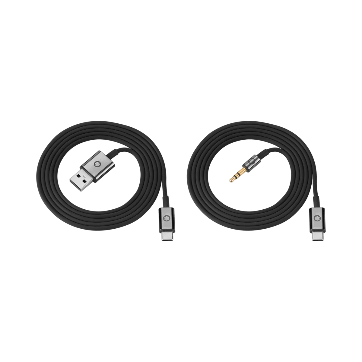 Extra cable set for your Montblanc MB 01 Headphones containing a black USB-C charging cable and a black audio cable.