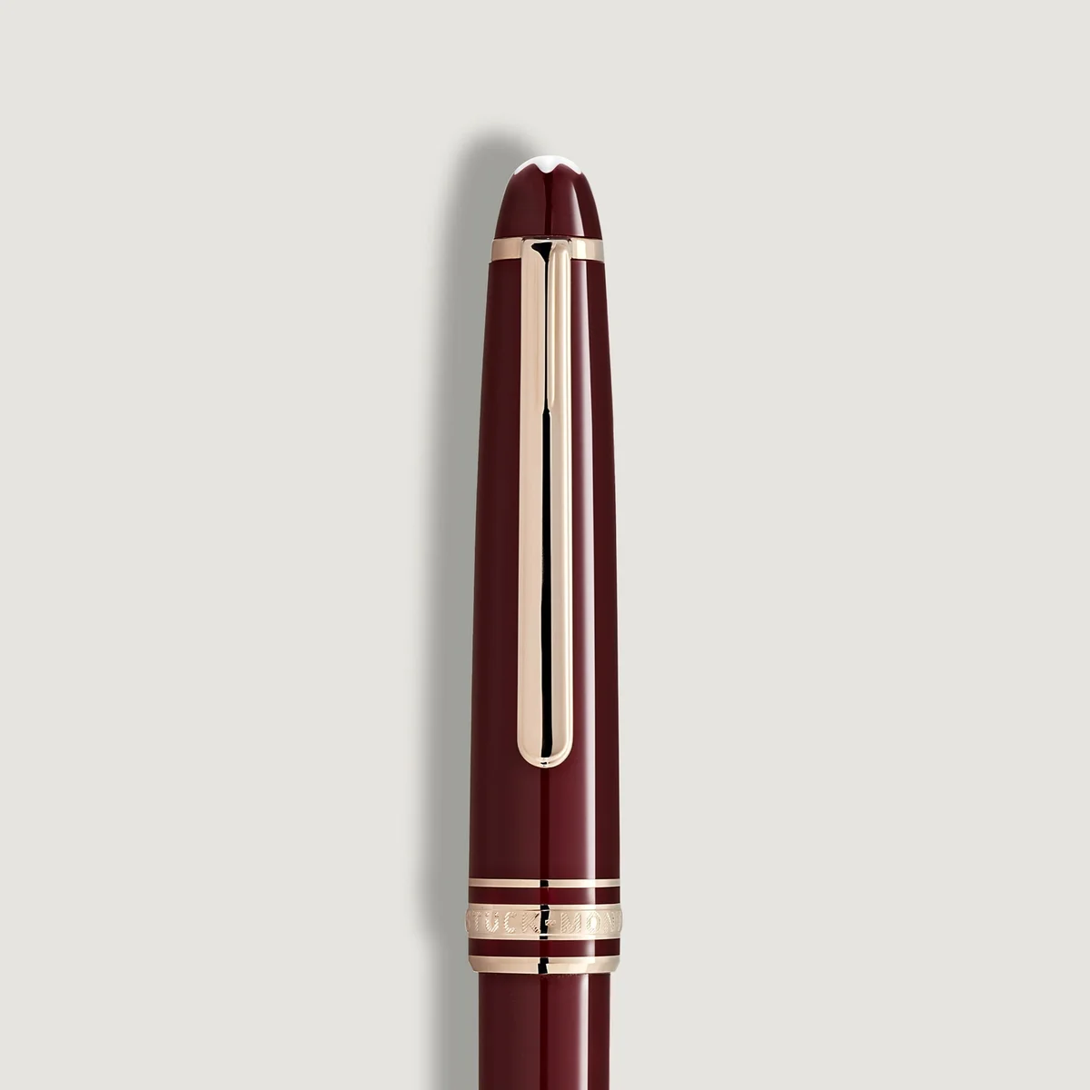 The timeless design of the Montblanc Meisterstück Classique Burgundy Red echoes back to the Maison’s history, with burgundy being a prominent hue since the 1920s. This color has remained a staple in Montblanc’s legacy ever since. The cap and barrel of the Meisterstück Burgundy Red Fountain Pen are crafted in burgundy red precious resin with signature gold fittings, featuring the iconic white Montblanc emblem inlaid in the cap top. With signature gold, Montblanc describes the enlightened shade of yellow gold which has become an appreciated tone for the Maison’s Writing Instruments.