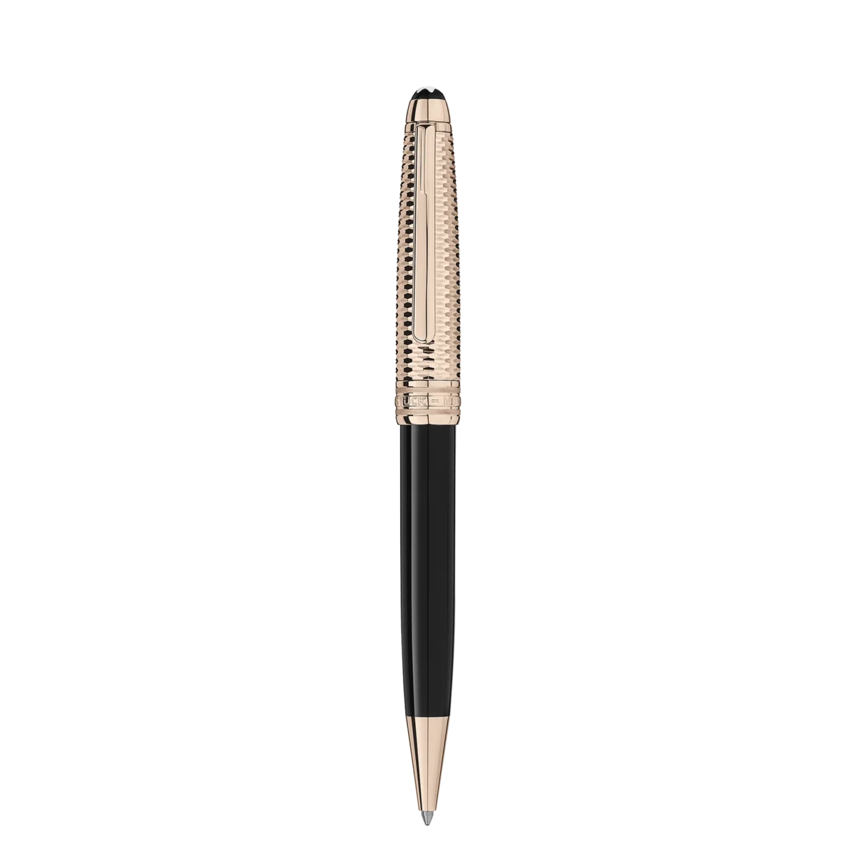 Montblanc Meisterstück Geometry collection is inspired by the desire to unite Meisterstück’s classic design with differentiated materials compared with the classic Meisterstück collection. The luxury ballpoint is crafted with a black precious resin barrel and metal cap engraved with a three-dimensional geometric pattern with optical effect in a sophisticated signature gold coating. The cap features the iconic white Montblanc emblem, a signature gold-coated clip and three rings embossed with the Montblanc brand name. With signature gold, Montblanc describes the enlightened shade of yellow gold which has become an appreciated tone for the Maison’s Writing Instruments.