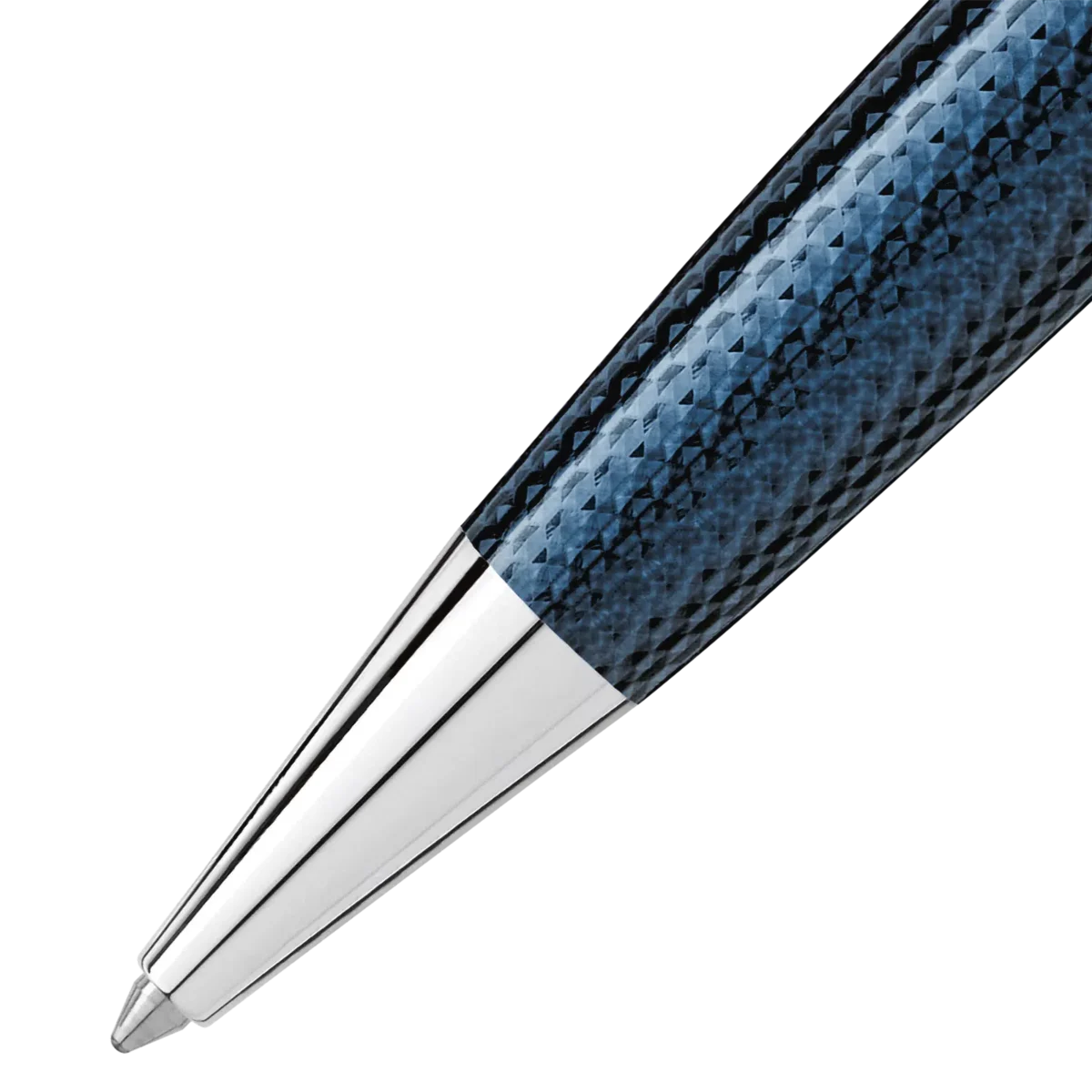 The Meisterstück Solitaire Blue Hour Midsize introduces itself as a precious, blue lacquered Solitaire product with platinum-coated fittings. The magical hour between daylight and night – the Blue Hour – creates a smooth contrast and breathtaking mood, which served as design inspiration. The hexagon pattern on the barrel and cap reflects the refraction of lights and night traffic in urban cities.