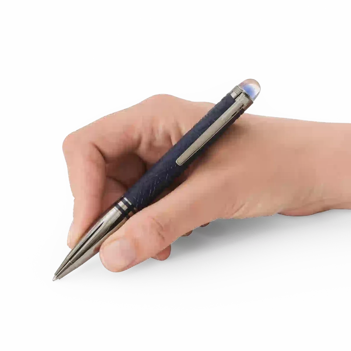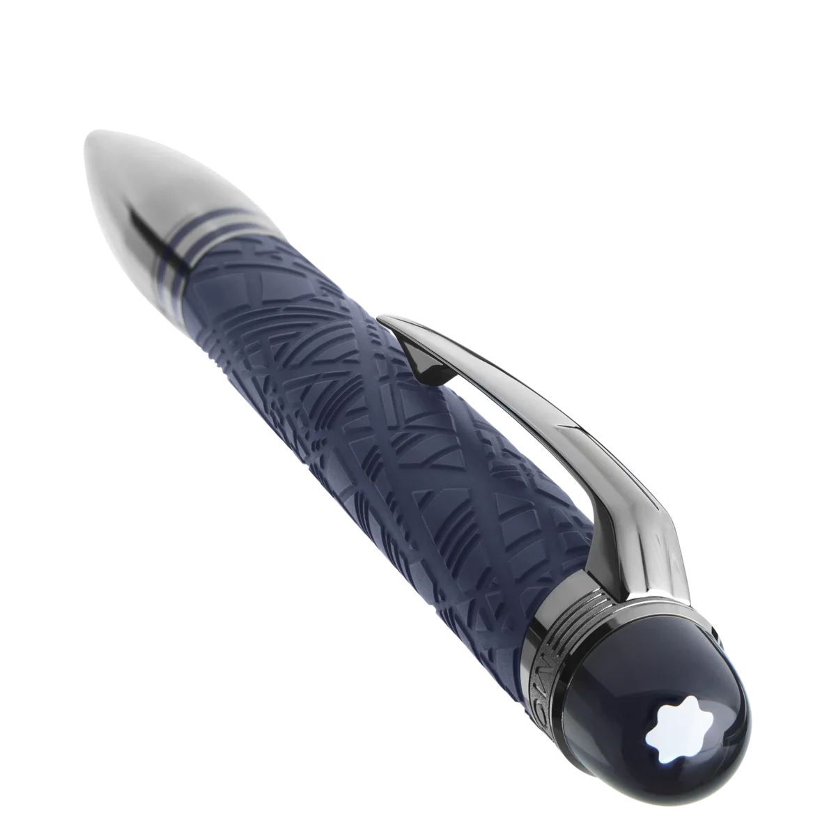 StarWalker SpaceBlue looks beyond planet Earth and turns towards the stars and the galaxy. This new StarWalker collection brings a new look to the resin barrel, with a design that recalls the intricate structures of the Widmanstätten Pattern, one of nature’s most hypnotic creations. The metal forepart and fittings are coated in dark ruthenium, accompanied by a deep space blue tone for the matte precious resin, recalling the hues of a starry sky. In addition, the subdome on the cap top, over which the Montblanc emblem floats, comes in a deep space blue color.